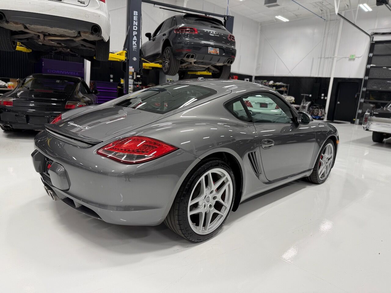 This 2009 Porsche Cayman S is finished in Meteor Grey Metallic over Black Extended Leather interior. Power is provided by a naturally aspirated 6-cylinder engine driving the rear wheels through a 7-speed PDK automatic transmission.