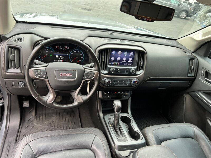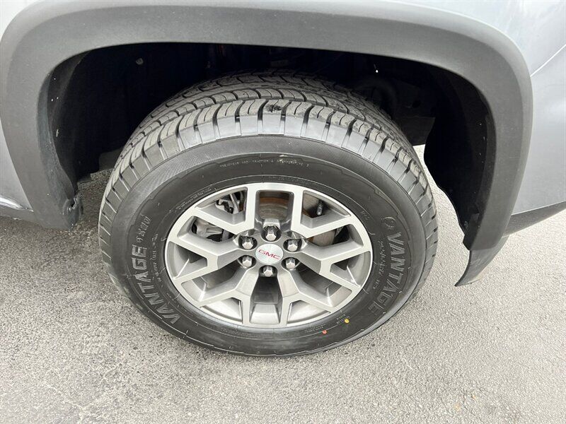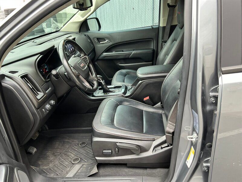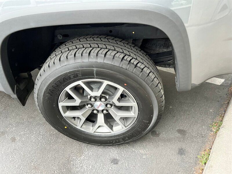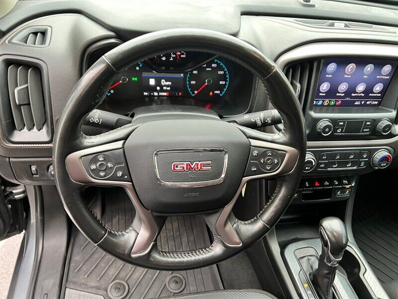 INSTALLED FEATURES: Air filtration, Front air conditioning: automatic climate control, Front air conditioning zones: single, Airbag deactivation: occupant sensing passenger, Front airbags: dual, Side airbags: front, Side curtain airbags: front / rear, Antenna type: diversity / mast, Auxiliary audio input: Bluetooth / iPod/iPhone / jack / USB, Radio: AM/FM / touch screen display / voice operated, Radio data system, Satellite radio: SiriusXM, Speed sensitive volume control, Total speakers: 6, ABS: 4-wheel, Braking assist, Electronic brakeforce distribution, Front brake type: ventilated disc, Power brakes, Rear brake type: ventilated disc, Armrests: rear center with cupholders / rear folding, Floor mat material: carpet, Floor material: carpet, Floor mats: front / rear, Heated steering wheel, Interior accents: aluminum / chrome, Shift knob trim: urethane, Steering wheel trim: leather, Assist handle: front / rear, Capless fuel filler system, Center console: front console with armrest and storage, Cruise control, Cupholders: front / rear, Multi-function remote: keyless entry / panic alarm, One-touch windows: 1, Overhead console: front, Power outlet(s): 12V front / USB front / USB rear, Power steering: variable/speed-proportional, Power windows: lockout button, Reading lights: front / rear, Rearview mirror: auto-dimming, Remote engine start, Steering wheel: tilt and telescopic, Steering wheel mounted controls: audio / cruise control / multi-function / phone / voice control, Storage: door pockets / in dash / sunglasses holder, Vanity mirrors: dual illuminating, Bumper detail: rear integrated corner step, Door handle color: body-color, Front bumper color: body-color, Grille color: black / body-color surround, Mirror color: body-color, Pickup bed light, Rear bumper color: body-color, Skid plate(s): front, Tailgate: lift assist / power locking, Window trim: black, Connected in-car apps: app marketplace integration, Infotainment: GMC Infotainment System, Infotainment screen size: 8 in., Smartphone integration: Android Auto / Apple CarPlay, Clock, Digital odometer, External temperature display, Fuel economy display: MPG / range, Gauge: oil pressure / tachometer, Instrument cluster screen size: 4.2 in., Multi-function display, Trip odometer, Warnings and reminders: low fuel level / low oil level / maintenance due, Daytime running lights: LED, Front fog lights: LED, Headlights: auto delay off / auto on/off / halogen / wiper activated, Side mirror adjustments: manual folding / power, Side mirrors: heated, 4WD selector: electronic hi-lo, 4WD type: part time w/ on demand setting, Battery: maintenance-free, Battery saver, Locking differential: rear, Camera system: rearview, Check rear seat reminder, Child safety door locks, Child seat anchors: LATCH system, Parking sensors: rear, Programmable safety key, Rearview monitor: in dash, Emergency locking retractors: front, Front seatbelts: 3-point, Rear seatbelts: 3-point, Seatbelt force limiters: front, Seatbelt pretensioners: front, Seatbelt warning sensor: front, Driver seat: heated, Driver seat manual adjustments: reclining, Driver seat power adjustments: 6 / height / lumbar, Front headrests: 2 / adjustable, Front seat type: bucket, Passenger seat: heated, Passenger seat manual adjustments: reclining, Passenger seat power adjustments: 4 / height / lumbar, Rear headrests: 2 / foldable, Rear seat folding: folds up, Rear seat type: bench, Upholstery: leather-trimmed, Anti-theft system: alarm / vehicle immobilizer, Power door locks: anti-lockout / auto-locking, Hill holder control, Off-road driving assist: hill descent, Stability control, Traction control, Trailer stability control, Front shock type: twin-tube gas, Front spring type: coil, Front stabilizer bar, Front struts, Front suspension classification: independent, Front suspension type: upper and lower control arms, Rear shock type: twin-tube gas, Rear spring type: leaf, Rear suspension classification: solid live axle, Rear suspension type: multi-leaf, Tuned suspension: off-road, Driver assistance app: roadside assistance, Electronic messaging assistance: voice operated / with read function, Hands-free phone call integration: voice operated, Satellite communications: OnStar / voice guided directions, Smart device app compatibility: myGMC with Connected Access, Smart device app function: maintenance status / vehicle location, Wi-Fi: hotspot, Wireless data link: Bluetooth, Tow hooks: front, Tow/Haul mode, Trailer backup guidance, Spare tire mount location: underbody, Spare tire size: full-size, Spare wheel type: steel, Tire Pressure Monitoring System, Wheels: aluminum alloy, Front wipers: variable intermittent, Pickup sliding rear window: manual, Power windows: safety reverse, Window defogger: rear