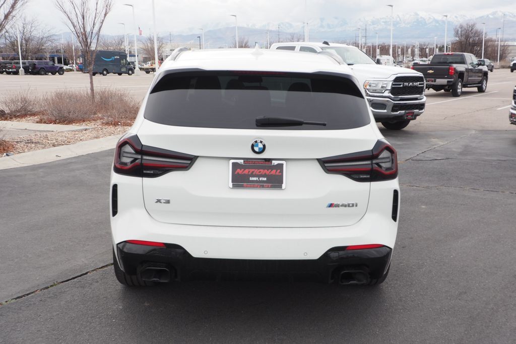 Alpine White 2022 BMW X3 M40i AWD 8-Speed Automatic Sport I6 CLEAN CARFAX, M-SPORT, 8-Speed Automatic Sport, Active Driving Assistant Pro, Active Park Distance Control, Connected Package Pro, Driving Assistance Professional Package, Extended Shadowline Trim, Extended Traffic Jam Assistant, Gesture Control, Head-Up Display, Heated Front Seats, Heated Steering Wheel, M Shadowline Lights, Navigation System, Parking Assistance Package, Parking Assistant Plus, Premium Package, Rear-View Camera, Shadowline Package, Surround View w/3D View.