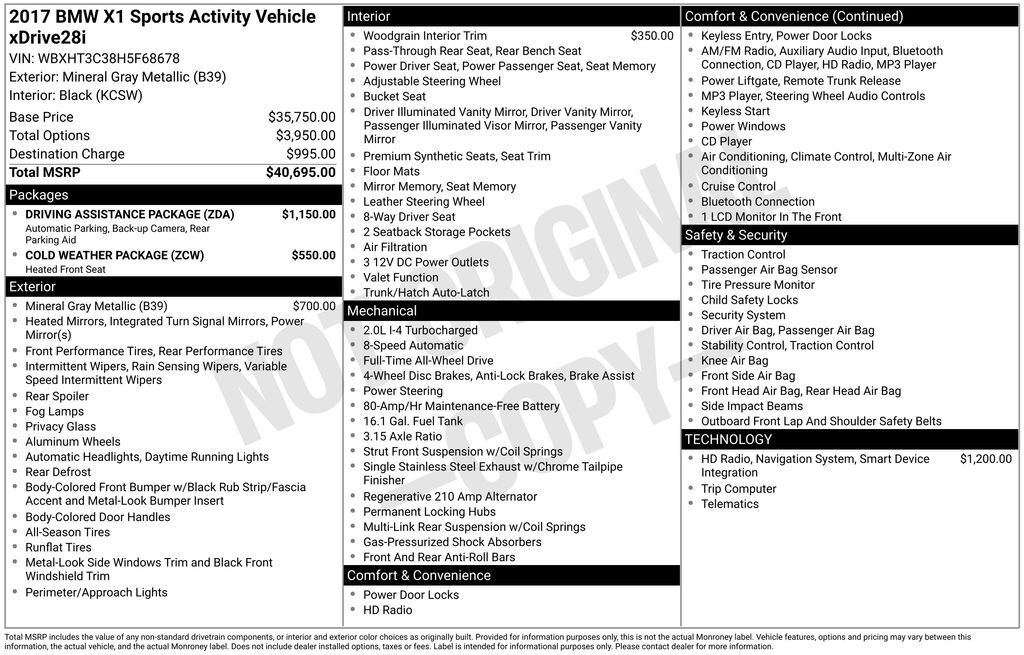 Mineral Grey Metallic 2017 BMW X1 xDrive28i AWD 8-Speed Automatic 2.0L 4-Cylinder DOHC 16V TwinPower Turbo