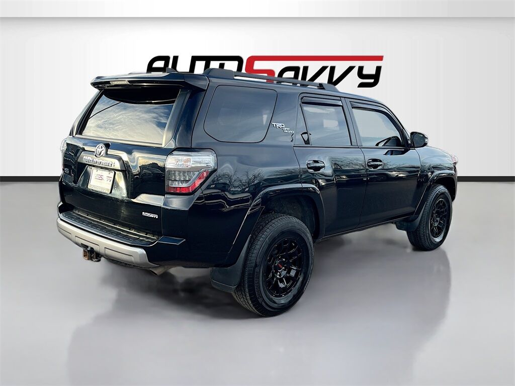 Explore the 2022 Toyota 4Runner TRD Off Road Premium at AutoSavvy Colorado Springs, where rugged capability meets modern comfort. This striking Midnight Black Metallic SUV is powered by a robust 4.0L V-6 engine with 270 horsepower, paired with a 5-speed automatic transmission, ensuring a powerful drive across any terrain. With only 52,105 miles, this 4Runner is ready for new adventures, offering a multi-mode four-wheel-drive system and an off-road suspension for superior performance. Inside, enjoy the luxury of SofTex leatherette upholstery, heated front seats, and a premium audio system with Apple CarPlay and Android Auto for seamless connectivity. The spacious interior is designed for comfort and convenience, featuring a power driver seat and a versatile cargo area. The current status of the title is branded, providing transparency for potential buyers. As a Savvy Certified vehicle, this 4Runner comes with a comprehensive 4-month/4,500-mile warranty, ensuring peace of mind with your purchase. Safety is a priority with advanced features like adaptive cruise control, lane departure warning, and a blind spot monitor. Optional premium upgrades, including a roof rack and all-weather floor liners, enhance its practicality and appeal. Visit AutoSavvy Colorado Springs today to discover the exceptional capabilities of this Toyota 4Runner and elevate your driving experience.