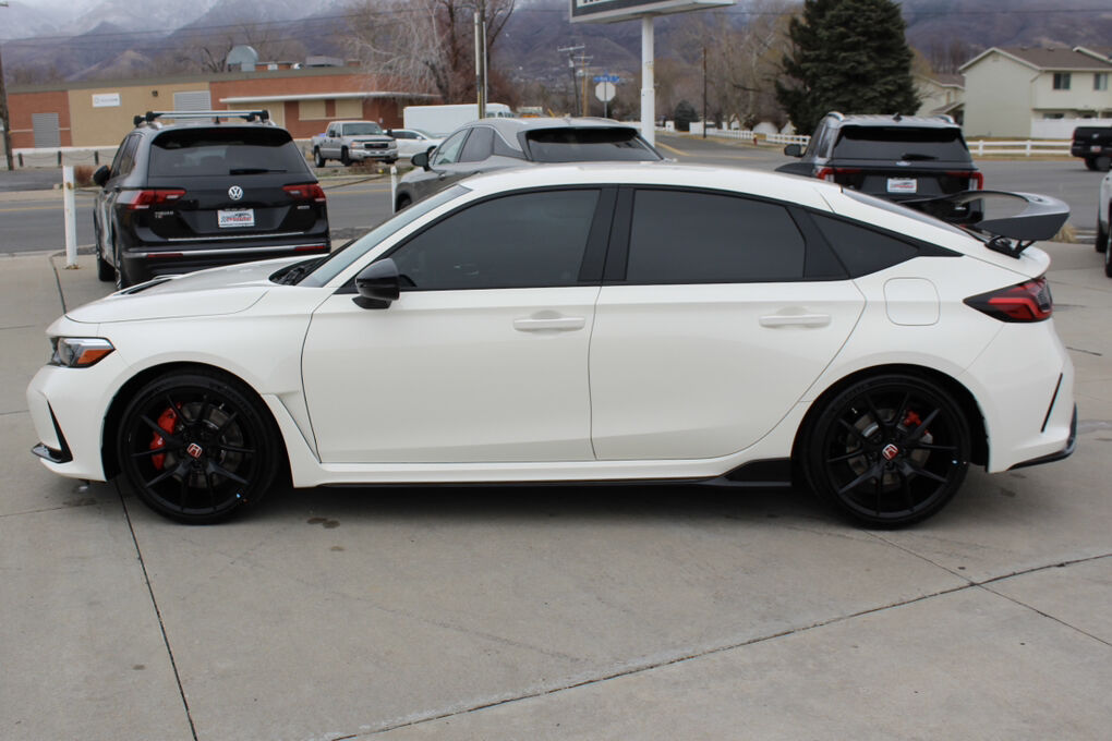 Finished in iconic Championship White, a color synonymous with Honda racing heritage, this Type R immediately commands attention. The aggressive stance is defined by sculpted aerodynamic bodywork, a gloss black grille, functional cooling vents, and a race-inspired rear wing designed to generate real downforce at speed. It sits on lightweight 19-inch matte black alloy wheels wrapped in ultra-sticky 265/30ZR19 high-performance summer tires, providing exceptional grip and razor-sharp turn-in response. Full LED lighting enhances both visibility and visual impact, completing a design that is as functional as it is striking.