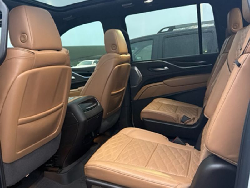 Touring Package: Soft Closing Front and Rear Doors; Illuminating Front and Rear Sill Plates; Air Ride Adaptive Suspension,Preferred Equipment Group 1SC: Trailer Side Blind Zone Alert; Power Panoramic Tilt-Sliding Sunroof; Enhanced Automatic Parking Assist; Smart Trailer Integration Indicator; Rear Camera Mirror Washer; Rear Camera Mirror; Theft-Deterrent Alarm System; Vehicle Interior Movement Sensor; Rear Cross Traffic Alert; Vehicle Inclination Sensor; Reverse Automatic Braking; Glass Breakage Sensor; Adaptive Cruise Control; Automatic Seat Belt Tightening; Body-Color Door Handles; Door Lock and Latch Shields; Electronic Limited-Slip Differential; 22" 12-Spoke Polished Alloy Wheels; Integrated Trailer Brake Controller; Hitch Guidance with Hitch View; Single-Speed Active Transfer Case; Running Board Assist Steps; Heated and Ventilated Driver and Front Passenger Seats; Reconfigurable Full-Color Head-Up Display; AKG Studio 19-Speaker Audio System; Magnetic Ride Control Suspension; Enhanced Automatic Emergency Braking,AKG Studio Reference 36-Speaker Audio System,Full Leather Seats with Faceted Quilting,Night Vision,Power-Retractable Assist Steps,3 Years of OnStar & Connected Services Plan,Crystal White Tricoat,Puddle Lamps with Cadillac Crest,Front License Plate Bracket,Apple CarPlay/Android Auto smart device wireless mirroring,Hands-off cruise control,Night vision,Enhanced Automatic Emergency Braking forward collision mitigation,Front Pedestrian Braking,Automatic curve slowdown cruise control,Unresponsive driver assist,Wi-Fi Hotspot capable mobile hotspot internet access,Rear camera with washer,Lane Keep Assist with Lane Departure Warning,Reverse Automatic Braking collision mitigation,Adaptive Cruise Control,Head-up display,Brake assist system,Cruise control with steering wheel mounted controls,Power liftgate rear cargo door,Ventilated driver and front passenger seats,Integrated navigation system with voice activation,Keyfob remote start,Heated steering wheel,Heated driver and front passenger seats,Heated rear seats,Leather front seat upholstery,Primary monitor touchscreen,Removable third-row seats,First and second-row sliding and tilting glass sunroof with express open/close activation sunshade,Driver seat power reclining, lumbar support, cushion tilt, fore/aft control and height adjustable control,Part and full-time 4WD,EcoTec3 6.2L V-8 gasoline direct injection, variable valve control, premium unleaded, engine with cylinder deactivation and 420HP,EcoTec3 6.2L V-8,Front wireless smart device charging,Alexa Built-In built-in virtual assistant,Driver attention alert with active monitoring,Teen Driver restricted driving mode/alerts,360 degree traffic cameras,Smart key with hands-free access and push button start,Keyfob window control,HD Surround Vision aerial view camera,Front windshield solar coating,Smart device remote start,Push-button,Automatic brake hold,Rear Camera Mirror video-feed rearview mirror,Stolen Vehicle Assistance vehicle tracker with vehicle slowdown,Bluetooth wireless audio streaming,Hitch Guidance with Hitch View vehicle to trailer hitching assist,Gauge cluster display size: 14.20,Enhanced Automatic Parking Assist automatic vehicle parking,Proximity cargo area access release,Front mounted camera