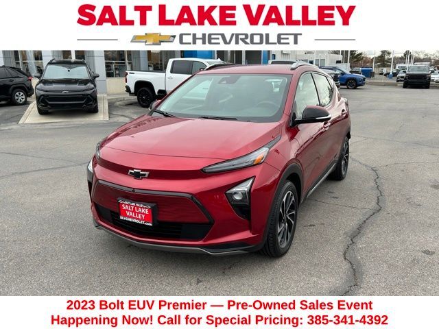 Turn every drive into something special with this Chevrolet Bolt EUV from Salt Lake Valley Chevrolet! Designed for comfort, performance, and style, this vehicle comes fully equipped with modern technology and convenience features you’ll love. Plus, enjoy a $1,000 finance savings, already included in the sale price, when you finance through one of our trusted lending partners. If you’re shopping for used cars in Salt Lake City, or searching for the perfect SUV, truck, or sedan, this Chevrolet Bolt EUV delivers the dependability and value you’re looking for. It’s the ideal match for your lifestyle - ready for everything from mountain adventures to city commutes. Visit Salt Lake Valley Chevrolet today and see why so many Utah drivers trust us for great deals on quality pre-owned vehicles. Explore our inventory online at www.slvchevy.com or call 801-969-8221 to schedule your test drive today! This impressive vehicle includes Preferred Equipment Group 2LZ, Super Cruise Package (Enhanced Automatic Emergency Braking and Super Cruise), 2-Way Power Driver Lumbar Seat Adjuster, 4-Wheel Disc Brakes, 6 Speakers, 6-Speaker Audio System, 6-Way Manual Passenger Seat Adjuster, 7.05 Final Drive Axle Ratio, 8-Way Power Driver Seat Adjuster, ABS brakes, Air Conditioning, Alloy wheels, AM/FM radio: SiriusXM with 360L, Apple CarPlay/Android Auto, Auto High-beam Headlights, Auto-dimming Rear-View mirror, Automatic temperature control, Brake assist, Bumpers: body-color, Compass, Delay-off headlights, Driver door bin, Driver vanity mirror, Dual front impact airbags, Dual front side impact airbags, Electronic Stability Control, Emergency communication system: OnStar and Chevrolet connected services capable, Exterior Parking Camera Rear, Front anti-roll bar, Front Bucket Seats, Front Center Armrest, Front License Plate Bracket, Front reading lights, Front wheel independent suspension, Fully automatic headlights, Heated door mirrors, Heated Driver & Front Passenger Seats, Heated front seats, Heated rear seats, Heated steering wheel, Illuminated entry, Knee airbag, Low tire pressure warning, Occupant sensing airbag, Outside temperature display, Overhead airbag, Overhead console, Panic alarm, Passenger door bin, Passenger vanity mirror, Perforated Leather-Appointed Seat Trim, Performance Ride & Handling Suspension, Power door mirrors, Power driver seat, Power steering, Power windows, Premium audio system: Chevrolet Infotainment 3 Plus, Radio: Chevrolet Infotainment 3 Plus System, Rain sensing wipers, Rear reading lights, Rear seat center armrest, Rear side impact airbag, Rear window defroster, Rear window wiper, Remote keyless entry, Roof rack: rails only, SD Card Receptacle, Security system, SiriusXM Radio w/360L, Speed control, Split folding rear seat, Steering wheel mounted audio controls, Telescoping steering wheel, Tilt steering wheel, Traction control, Trip computer, Turn signal indicator mirrors, Variably intermittent wipers, Ventilated Driver Seat, Ventilated Front Passenger Seat, Ventilated front seats, and Wheels: 17'' Machined-Face Aluminum, offering everything you need for your next adventure.
