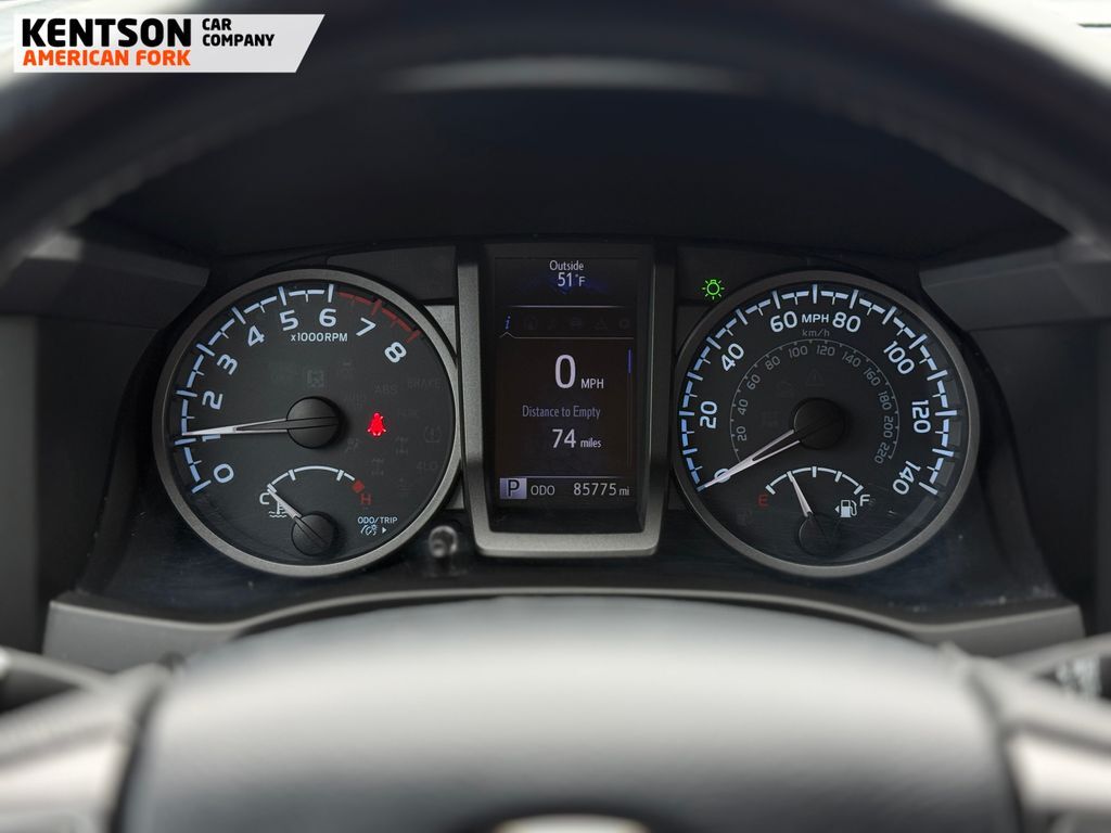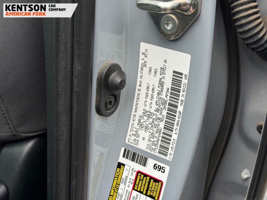 TRD Sport Package (120V/400W Deck Mounted AC Power, Auto-Dimming Inside Rear-View Mirror w/Compass, Color-Keyed Overfenders, Engine Immobilizer, LED Daytime Running Lamps, Power Sliding Rear Window w/Privacy Glass, Remote Keyless Entry System, Variable Intermittent Wipers, and Wide Angle Front Fog Lamps), ABS brakes, Alloy wheels, Electronic Stability Control, Illuminated entry, Low tire pressure warning, Remote keyless entry, Traction control, 6 Speakers, Air Conditioning, AM/FM radio: SiriusXM, Anti-whiplash front head restraints, Auto High-beam Headlights, Auto-dimming Rear-View mirror, Brake assist, Bumpers: body-color, CD player, Driver door bin, Dual front impact airbags, Dual front side impact airbags, Entune App Suite, Exterior Parking Camera Rear, Fabric Seat Trim (FD), Front anti-roll bar, Front Bucket Seats, Front Center Armrest, Front fog lights, Front reading lights, Front wheel independent suspension, Knee airbag, Leather Shift Knob, Occupant sensing airbag, Outside temperature display, Overhead airbag, Overhead console, Panic alarm, Passenger door bin, Power door mirrors, Power steering, Power windows, Radio: Entune Premium w/AM/FM/CD/Nav/App Suite, Rear step bumper, Security system, Speed control, Speed-sensing steering, Split folding rear seat, Steering wheel mounted audio controls, Tachometer, Telescoping steering wheel, Tilt steering wheel, Trip computer, Turn signal indicator mirrors, Variably intermittent wipers, and Wheels: 17'' x 7.5'' Machined Alloy.