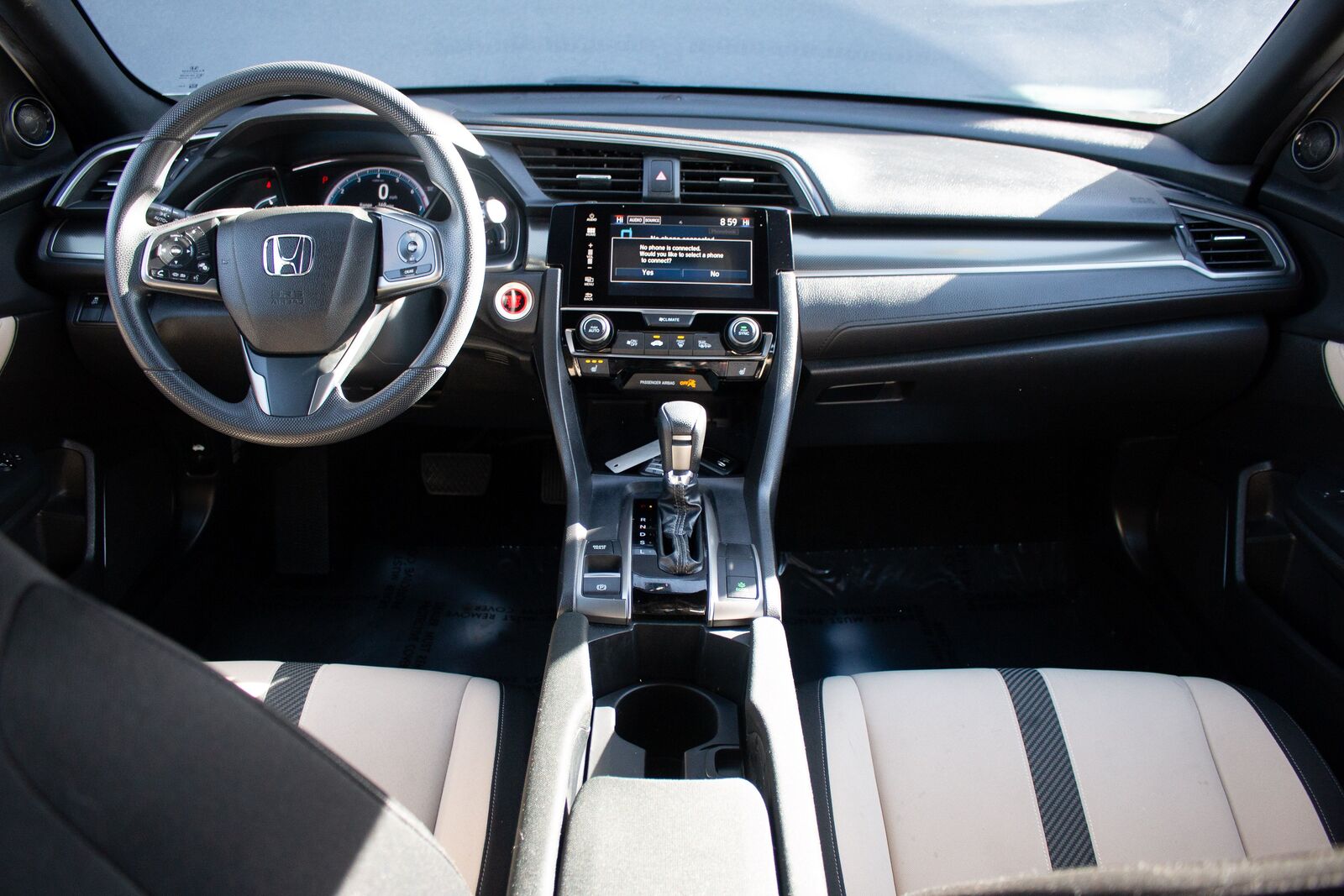 Step inside to find a thoughtfully designed interior that balances comfort with functionality. The black/ivory fabric seating surfaces offer a plush and inviting atmosphere- providing a striking contrast against the exterior color. Ample headroom and legroom ensure every journey is comfortable- while advanced technological features keep you connected and in control.