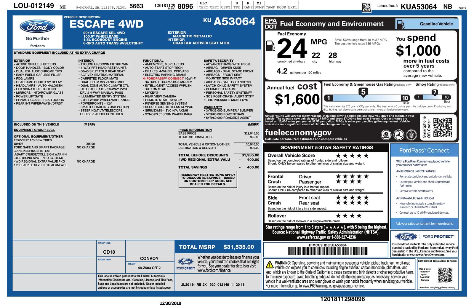 This model comes equipped with the versatile Equipment Group 300A- ensuring a well-rounded package of both convenience and advanced features. The SEL Safe & Smart package is another highlight- a suite of safety technologies designed to keep you and your passengers secure on every journey. The Four Wheel Drive (4WD) drivetrain adds to the Escape's capability- providing superior traction and control in various driving conditions- from slippery roads to rugged trails.