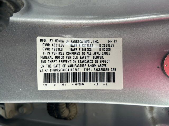 Recent Arrival!Priced below KBB Fair Purchase Price!Odometer is 63159 miles below market average!2013 Honda Accord EX-L27/36 City/Highway MPGCall (801) 563-4011 today to schedule your test drive!Awards:* 2013 KBB.com Brand Image AwardsKelley Blue Book Brand Image Awards are based on the Brand Watch(tm) study from Kelley Blue Book Market Intelligence. Award calculated among non-luxury shoppers. For more information, visit www.kbb.com. Kelley Blue Book is a registered trademark of Kelley Blue Book Co., Inc.Gray Leather, 17 Alloy Wheels, 4-Wheel Disc Brakes, 7 Speakers, ABS brakes, Air Conditioning, Alloy wheels, AM/FM radio: XM, Auto-dimming Rear-View mirror, Automatic temperature control, Brake assist, Bumpers: body-color, CD player, Delay-off headlights, Driver door bin, Driver vanity mirror, Dual front impact airbags, Dual front side impact airbags, Electronic Stability Control, Exterior Parking Camera Rear, Four wheel independent suspension, Front anti-roll bar, Front Bucket Seats, Front Center Armrest, Front dual zone A/C, Front fog lights, Front reading lights, Fully automatic headlights, Heated door mirrors, Heated Front Bucket Seats, Heated front seats, Illuminated entry, Leather steering wheel, Low tire pressure warning, Memory seat, Occupant sensing airbag, Outside temperature display, Overhead airbag, Overhead console, Panic alarm, Passenger door bin, Passenger vanity mirror, Perforated Leather-Trimmed Seats, Power door mirrors, Power driver seat, Power moonroof, Power passenger seat, Power steering, Power windows, Radio data system, Radio: 360-Watt AM/FM/CD Premium Audio System, Rear anti-roll bar, Rear seat center armrest, Rear window defroster, Remote keyless entry, Security system, Speed control, Speed-sensing steering, Speed-Sensitive Wipers, Steering wheel mounted audio controls, Tachometer, Telescoping steering wheel, Tilt steering wheel, Traction control, Trip computer, Turn signal indicator mirrors, and Variably intermittent wipers. Gray Leather.