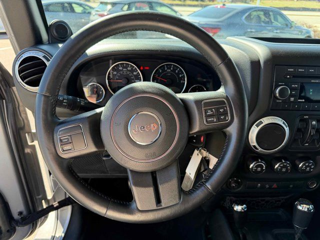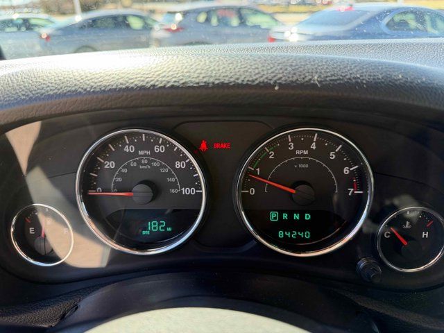 AIR CONDITIONING W/AUTO TEMP CONTROL -inc: Air Filtering,3.21 REAR AXLE RATIO (STD),ENGINE: 3.6L V6 24V VVT (STD),BLACK CLOTH BUCKET SEATS -inc: adjustable head restraints,MANUFACTURER'S STATEMENT OF ORIGIN,QUICK ORDER PACKAGE 24G -inc: Engine: 3.6L V6 24V VVT Transmission: 5-Speed Automatic (W5A580),TRAILER TOW GROUP -inc: Class II Receiver Hitch Trailer Tow w/4-Pin Connector Wiring,BLACK 3-PIECE HARD TOP -inc: If ordering without AEM (Dual Top Group) the black soft top will not be included Freedom Panel Storage Bag Rear Window Defroster Rear Window Wiper/Washer Delete Sunrider Soft Top,WHEELS: 18 X 7.5 POLISHED SATIN CARBON (STD),TRANSMISSION: 5-SPEED AUTOMATIC (W5A580) -inc: Tip Start Hill Descent Control,REMOTE START SYSTEM,SMOKER'S GROUP -inc: Cigar Lighter Removable Ash Tray,BILLET METALLIC CLEARCOAT,Four Wheel Drive,Power Steering,ABS,4-Wheel Disc Brakes,Brake Assist,Brake Actuated Limited Slip Differential,Aluminum Wheels,Tires - Front All-Terrain,Tires - Rear All-Terrain,Conventional Spare Tire,Convertible Soft Top,Tow Hooks,Tow Hooks,Heated Mirrors,Power Mirror(s),Privacy Glass,Intermittent Wipers,Variable Speed Intermittent Wipers,Rollover Protection Bars,Running Boards/Side Steps,Power Door Locks,Automatic Headlights,Fog Lamps,AM/FM Stereo,CD Player,Satellite Radio,MP3 Capability,Auxiliary Audio Input,Requires Subscription,Premium Sound System,Steering Wheel Audio Controls,Premium Sound System,Auxiliary Audio Input,Pass-Through Rear Seat,Rear Bench Seat,Adjustable Steering Wheel,Trip Computer,Power Windows,Leather Steering Wheel,Keyless Entry,Power Door Locks,Cruise Control,A/C,Cloth Seats,Bucket Seats,Auto-Dimming Rearview Mirror,Driver Vanity Mirror,Passenger Vanity Mirror,Floor Mats,Power Windows,Power Door Locks,Trip Computer,Security System,Immobilizer,Traction Control,Stability Control,Traction Control,Tire Pressure Monitor,Driver Air Bag,Passenger Air Bag,Passenger Air Bag Sensor,Child Safety Locks