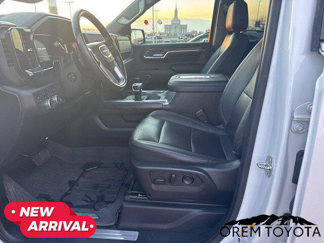 Priced below KBB Fair Purchase Price!2022 GMC Sierra 1500 SLTWhite Frost Tricoat EcoTec3 5.3L V8CARFAX One-Owner.To see more quality vehicles like this one right here just click on www.oremtoyota.com or dial (801) 823-6020. At Orem Toyota, we pledge to consistently provide a caring, value driven, and exceptional experience for all of our guests. We love being a family owned business and hope to welcome you to be part of our family. This GMC Sierra 1500 is equipped with the following features: Preferred Equipment Group 4SA (120-Volt Instrument Panel Power Outlet, 170 Amp Alternator, 2 Charge/Data USB Ports, 2 Type-C Charge-Only Rear USB Ports, 6-Speaker Audio System Feature, Auto-Locking Rear Differential, Auxiliary External Transmission Oil Cooler, Chrome Header & Chrome Grille Insert Bars, Color-Keyed Carpeting Floor Covering, Compass, Deep-Tinted Glass, Electric Rear-Window Defogger, Electrical Steering Column Lock, Front Frame-Mounted Black Recovery Hooks, Front Rainsensing Wipers, GMC Connected Access Capable, HD Rear Vision Camera, Heated Steering Wheel, Keyless Open & Start, LED Cargo Area Lighting, Manual Tilt-Wheel & Telescoping Steering Column, OnStar & GMC Connected Services Capable, Perimeter Lighting, Power Door Locks, Power Front Passenger Windows w/Express Up/Down, Power Front Windows w/Driver Express Up/Down, Power Rear Windows w/Express Down, Push Button Start, Rear Wheelhouse Liners, Remote Vehicle Starter System, SiriusXM w/360L, Steering Wheel Audio Controls, Theft Deterrent System (Unauthorized Entry), Wi-Fi Hotspot Capable, Wireless Phone Projection, and 120-Volt Bed Mounted Power Outlet), SLT Convenience Package (Floor-Mounted Center Console, Front Bucket Seats, Power Rake & Telescoping Steering Column, Premium Bose 7-Speaker Sound System, Ventilated Driver & Front Passenger Seats, Wireless Charging, 2 Charge/Data USB Ports Inside Center Console, and Electronic Precision Shift), SLT Preferred Package (Adaptive Cruise Control, Heated 2nd Row Outboard Seats, Power Sliding Rear Window w/Rear Defogger, and Universal Home Remote), Standard Suspension Package, Trailering Package (Hitch Guidance), X31 Off-Road Package (Dual Exhaust System, Heavy-Duty Air Filter, Hill Descent Control, Off-Road Suspension, and X31 Hard Badge), 10-Speed Automatic, 4WD, Jet Black Leather, Navigation System, 10-Way Power Driver Seat Adjuster w/Lumbar, 10-Way Power Passenger Seat Adjuster w/Lumbar, 3 Years of OnStar & Connected Services Plan, 3.23 Rear Axle Ratio, 4-Wheel Disc Brakes, 6 Speakers, ABS brakes, Air Conditioning, All-Weather Floor Liner (LPO), Alloy wheels, AM/FM radio: SiriusXM with 360L, Apple CarPlay/Android Auto, Auto High-beam Headlights, Auto-dimming door mirrors, Auto-dimming Rear-View mirror, Automatic Emergency Braking, Automatic temperature control, Brake assist, Buckle to Drive, Bumpers: chrome, Delay-off headlights, Driver door bin, Driver Memory, Driver vanity mirror, Dual front impact airbags, Dual front side impact airbags, Electronic Stability Control, Emergency communication system: OnStar and GMC Connected Services capable, Exterior Parking Camera Rear, Following Distance Indicator, Forward Collision Alert, Front 40/20/40 Split-Bench Seat, Front anti-roll bar, Front Center Armrest w/Storage, Front dual zone A/C, Front fog lights, Front License Plate Kit, Front Pedestrian Braking, Front reading lights, Front wheel independent suspension, Fully automatic headlights, Heated door mirrors, Heated Driver & Front Outboard Passenger Seating, Heated front seats, Heated steering wheel, Illuminated entry, IntelliBeam Automatic High Beam On/Off, Lane Keep Assist w/Lane Departure Warning, Low tire pressure warning, Memory seat, Not Equip w/Heat & Vent Seat Cushion Blower Motor, Not Equipped w/Dynamic Fuel Management, Not Equipped w/Steering Column Lock, Occupant sensing airbag, Outside temperature display, Overhead airbag, Overhead console, Panic alarm, Passenger door bin, Passenge