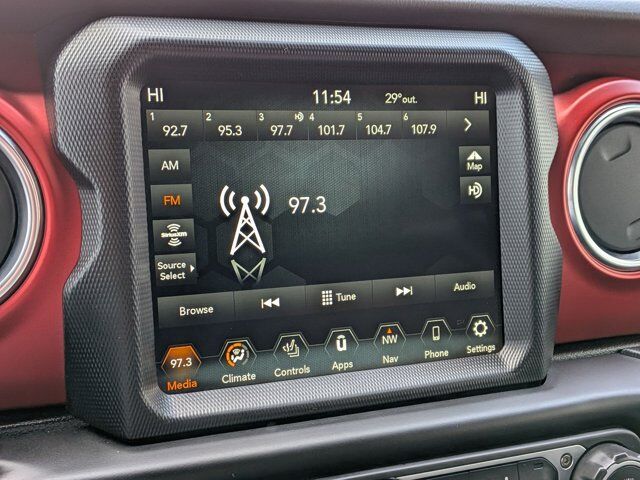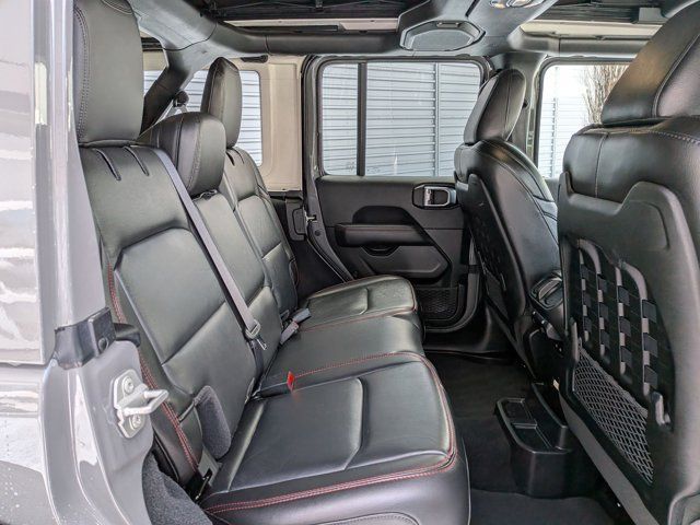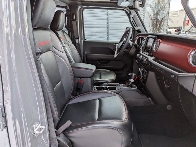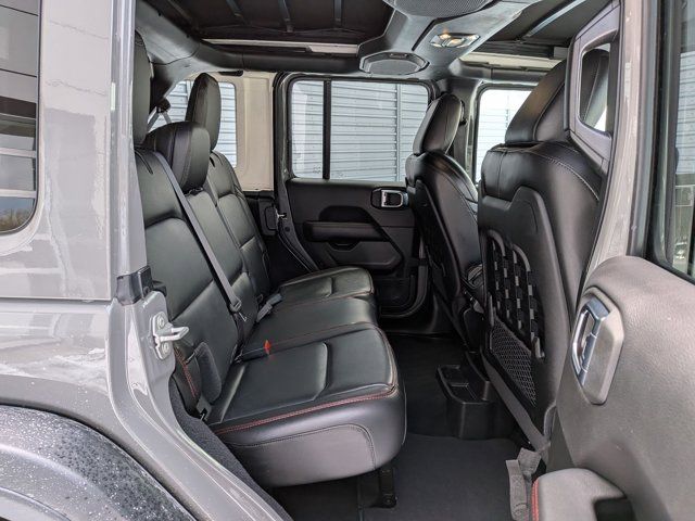 MOPAR SATIN BLACK GRILLE,BLACK LEATHER TRIMMED BUCKET SEATS -inc: Leather Wrapped Park Brake Handle Leather Wrapped Shift Knob Premium Door Trim Panel,COLD WEATHER GROUP -inc: Heated Steering Wheel Heated Front Seats,LED LIGHTING GROUP -inc: Daytime Running Lamps LED Accents Front LED Fog Lamps LED Premium Reflector Headlamps LED Taillamps,TIRES: LT285/70R17C BSW OFF-ROAD (STD),ENGINE: 3.6L V6 24V VVT ETORQUE UPG I -inc: 600 Amp Maintenance Free Battery 48V Belt Starter Generator Delete Alternator,PERFORMANCE SUSPENSION (STD),QUICK ORDER PACKAGE 25R RUBICON -inc: Engine: 3.6L V6 24V VVT eTorque UPG I Transmission: 8-Speed Automatic (850RE),GVWR: 5 800 LBS (STD),STING-GRAY CLEARCOAT,SKY 1-TOUCH POWER TOP -inc: Rear Window Defroster Rear Window Wiper/Washer Removable Rear Quarter Windows Power Top Quarter Window Storage Bag,WHEELS: 17 X 7.5 MACHINED W/BLACK POCKETS,4.10 REAR AXLE RATIO (STD),FRONT LICENSE PLATE BRACKET,TRANSMISSION: 8-SPEED AUTOMATIC (850RE) -inc: Selec-Speed Control,Four Wheel Drive,Locking/Limited Slip Differential,Power Steering,ABS,4-Wheel Disc Brakes,Brake Assist,Locking/Limited Slip Differential,Brake Actuated Limited Slip Differential,Aluminum Wheels,Tires - Front All-Terrain,Tires - Rear All-Terrain,Conventional Spare Tire,Tow Hooks,Tow Hooks,Heated Mirrors,Power Mirror(s),Privacy Glass,Intermittent Wipers,Variable Speed Intermittent Wipers,Rollover Protection Bars,Power Door Locks,Daytime Running Lights,Automatic Headlights,Fog Lamps,Locking/Limited Slip Differential,AM/FM Stereo,Navigation System,Satellite Radio,Bluetooth Connection,HD Radio,Requires Subscription,Premium Sound System,MP3 Capability,Steering Wheel Audio Controls,Auxiliary Audio Input,Premium Sound System,Bluetooth Connection,Driver Adjustable Lumbar,Driver Adjustable Lumbar,Pass-Through Rear Seat,Rear Bench Seat,Adjustable Steering Wheel,Trip Computer,Power Windows,WiFi Hotspot,Keyless Entry,Power Door Locks,Keyless Start,Keyless Entry,Power Door Locks,Universal Garage Door Opener,Cruise Control,Climate Control,Multi-Zone A/C,A/C,Bucket Seats,Auto-Dimming Rearview Mirror,Driver Vanity Mirror,Passenger Vanity Mirror,Driver Illuminated Vanity Mirror,Passenger Illuminated Visor Mirror,Floor Mats,Navigation System,Smart Device Integration,Power Windows,Power Door Locks,Trip Computer,Security System,Immobilizer,Traction Control,Stability Control,Traction Control,Front Side Air Bag,Telematics,Requires Subscription,Tire Pressure Monitor,Driver Air Bag,Passenger Air Bag,Passenger Air Bag Sensor,Child Safety Locks,Back-Up Camera