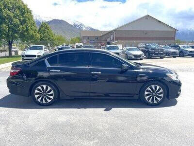 2017 HONDA ACCORD HYBRID TOURING WITH 87K ORIGINAL MILES. VERY RELIABLE AND EFFICIENT CAR. GETS GREAT GAS MILEAGE 49 MPG AVG AND 45 MPG HIGHWAY. THIS VEHICLE HOLDS A BRANDED TITLE. IT WAS FULLY INSPECTED AND REPAIRED-RESTORED BY A TEAM OF PROFESSIONALS. *** COMES WITH A 6 MONTHS LTD BODYWORK WARRANTY *** (call or text for specific details pertaining to the damage and repairs). FULLY LOADED WITH SAFETY AND LUXURY FEATURES SUCH AS LEATHER HEATED INTERIOR, REAR HEATED SEATS, PUSH BUTTON START, STEERING WHEEL CONTROLS, ADAPTIVE CRUISE CONTROL, LANE ASSIST, SUN ROOF, POWER SEATS, TRAC. CONTROL, CRUISE CTRL, AUX AND USB PORTS, BLUETOOTH, BACK UP CAMERA, DIFFERENT DRIVE MODES, AND MUCH MORE… COME SEE THIS CAR AND MANY MORE AT OUR STORE "AUTO CLUB" IN LINDON 232 N. GENEVA RD. MON - SAT, 10 AM TO 7 PM. WE ARE PROUD TO OFFER YOU THE HIGHEST QUALITY CARS FOR A GREAT PRICE. IF YOU'D LIKE TO SEE OUR FULL INVENTORY, CLICK " VIEW MORE FROM THIS SELLER" ON ANY OF OUR KSL LISTINGS OR OUR WEBSITE https://www.autoclubutah.com/ . WE HAVE A WIDE SELECTION OF SIMILAR CARS AND MOST OF THEM QUALIFY FOR AN EXTENDED WARRANTY. FEEL FREE TO CALL OR TEXT ANY TIME FOR ANY ADDITIONAL INFORMATION OR TO SCHEDULE YOUR TEST-DRIVE. APPOINTMENTS RECOMMENDED. WE DO TRADE-INS AND CONSIGNMENT SALES. CALL OR TEXT FOR MORE INFORMATION OR TO SCHEDULE YOUR TEST-DRIVE (385) 842-1510 OR (801) 669-7676.