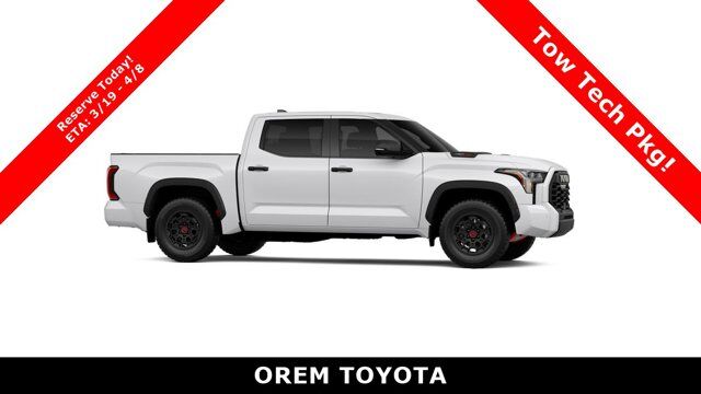 Intelligent Toyota safety is standard with a multi-terrain monitor, automatic braking, pedestrian detection, adaptive cruise control, lane-keeping assistance, a rearview camera, traffic sign assistance, and more. Intense and intelligent, our Tundra TRD Pro helps drivers work hard and play harder! Save this Page and Call for Availability. We Know You Will Enjoy Your Orem Toyota Test Drive Towards Ownership! May not represent actual vehicle. (Options, colors, trim and body style may vary) Excludes tax, tag, title and registration. Purchase offer does not include $499 Doc fee. Vehicle stock images represent trim level only.