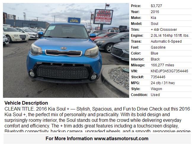 CLEAN TITLE. 2016 Kia Soul — Stylish, Spacious, and Fun to Drive