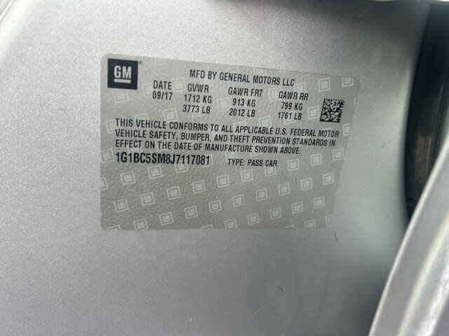 LS PREFERRED EQUIPMENT GROUP includes Standard Equipment,JET BLACK CLOTH SEAT TRIM,LICENSE PLATE BRACKET FRONT,SILVER ICE METALLIC,AUDIO SYSTEM CHEVROLET MYLINK RADIO WITH 7 DIAGONAL COLOR TOUCH-SCREEN AM/FM stereo with seek-and-scan and digital clock includes Bluetooth streaming audio for music and select phones; featuring Android Auto and Apple CarPlay capability for compatible phone (STD),ENGINE 1.4L TURBO DOHC 4-CYLINDER DI with Continuous Variable Valve Timing (CVVT) (153 hp [114.08 kW] @ 5600 rpm 177 lb-ft of torque [239 N-m] @ 2000-4000 rpm) (STD),TRANSMISSION 6-SPEED AUTOMATIC (STD),SEATS FRONT BUCKET WITH RECLINING SEATBACKS AND ADJUSTABLE HEAD RESTRAINTS (STD),LPO FRONT AND REAR SPLASH GUARDS CUSTOM MOLDED,Turbocharged,Front Wheel Drive,Power Steering,ABS,4-Wheel Disc Brakes,Wheel Covers,Steel Wheels,Tires - Front All-Season,Tires - Rear All-Season,Automatic Headlights,Power Mirror(s),Intermittent Wipers,Variable Speed Intermittent Wipers,AM/FM Stereo,MP3 Capability,Bluetooth Connection,Auxiliary Audio Input,Smart Device Integration,Bluetooth Connection,WiFi Hotspot,MP3 Capability,Auxiliary Audio Input,Bucket Seats,Cloth Seats,Pass-Through Rear Seat,Floor Mats,Adjustable Steering Wheel,Tire Pressure Monitor,Power Windows,Power Door Locks,Keyless Entry,Power Door Locks,Remote Trunk Release,Security System,Security System,Immobilizer,A/C,Rear Defrost,Driver Vanity Mirror,Passenger Vanity Mirror,Traction Control,Stability Control,Daytime Running Lights,Driver Air Bag,Passenger Air Bag,Front Side Air Bag,Rear Side Air Bag,Front Head Air Bag,Rear Head Air Bag,Passenger Air Bag Sensor,Knee Air Bag,Telematics,Navigation from Telematics,Requires Subscription,Back-Up Camera,Driver Restriction Features,Tire Pressure Monitor