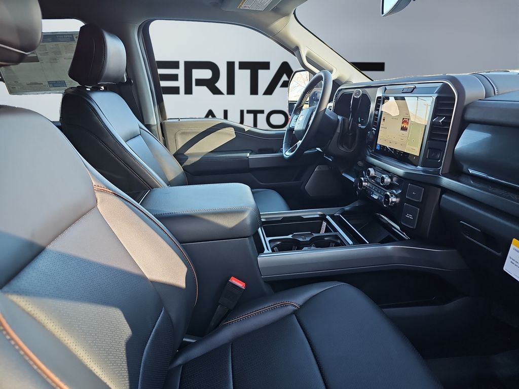 Pre-Collision Assist with Automatic Emergency Braking (AEB) forward collision mitigation,Lane Centering hands-on cruise control,Predictive Speed Assist Automatic curve slowdown cruise control,5G Modem - Ford Connectivity Package mobile hotspot internet access,Rear mounted camera,Reverse Camera rear mounted camera,Reverse Brake Assist collision mitigation,Lane Keeping Alert,Adaptive Cruise Control with Stop-and-Go,Head-up display,Brake assist system,Cruise control with steering wheel mounted controls,Power open and close tailgate,Ventilated driver and front passenger seats,Connected Navigation integrated navigation system with voice activation,Keyfob remote start,Heated steering wheel,Heated driver and front passenger seats,Heated rear seats,Leather front seat upholstery,ActiveX leatherette front seat upholstery,Primary monitor touchscreen,Driver seat power reclining, lumbar support, fore/aft control and height adjustable control,Driver seat power reclining, lumbar support, fore/aft control and height adjustable control,Part-time 4WD,Powerstroke 6.7L V-8,Powerstroke 6.7L V-8 diesel direct injection, intercooled turbo, diesel, engine with 500HP,Powerstroke 6.7L V-8 diesel direct injection, DEVCT intercooled turbo, diesel, engine with 500HP,SYNC 4 with Enhanced Voice Recognition (Alexa-Built-In) built-in virtual assistant,Front wireless smart device charging,PCA with AEB and Intersection Assist forward collision mitigation with left turn assist,Driver Alert,Smart device remote start,Mechanical,Intelligent Access with hands-free access and push button start,Push-button,Aerial view camera,Onboard scale,Weight capacity alert,Bluetooth wireless audio streaming,Dynamic Hitch Assist vehicle to trailer hitching assist,Pro Trailer Backup Assist vehicle and trailer reverse assist,Pro Trailer Hitch Assist automated vehicle to trailer hitching assist,Gauge cluster display size: 12.00,Front mounted camera,Right side camera,Pickup box camera,Left side camera,BLIS with Trailer Tow Coverage blind spot warning,Pedestrian detection warning