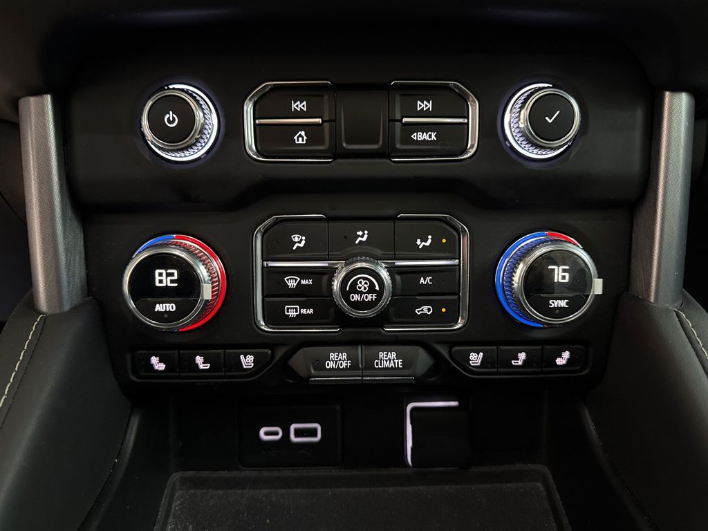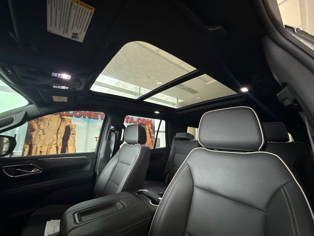 4WD, 2 Presets For Power Driver Seat, 3.23 Rear Axle Ratio, 3rd row seats: split-bench, 4-Wheel Disc Brakes, 9 Speakers, ABS brakes, Air Conditioning, Alloy wheels, AM/FM radio: SiriusXM with 360L, AM/FM Stereo, Apple CarPlay/Android Auto, Auto High-beam Headlights, Auto-dimming Rear-View mirror, Automatic Emergency Braking, Automatic temperature control, Bodyside moldings, Bose 9-Speaker Stereo Audio System Feature, Brake assist, Bright Chrome Bodyside Moldings, Bright Front & Rear Door Sill Plates, Bumpers: body-color, Chrome Door Handles w/Body-Color Strip, Compass, Delay-off headlights, Driver door bin, Driver vanity mirror, Dual front impact airbags, Dual front side impact airbags, Dual-Pane Panoramic Power Sunroof, Electronic Stability Control, Emergency communication system: OnStar and GMC connected services capable, Following Distance Indicator, Forward Collision Alert, Four wheel independent suspension, Front & Rear Park Assist, Front anti-roll bar, Front Bucket Seats, Front Center Armrest, Front dual zone A/C, Front fog lights, Front Pedestrian Braking, Front reading lights, Fully automatic headlights, Garage door transmitter, Hands-Free Power Programmable Rear Liftgate, Heated & Ventilated Driver & Front Passenger Seats, Heated door mirrors, Heated Driver & Front Passenger Seats, Heated front seats, Illuminated entry, Inside Rear-View Auto-Dimming Mirror, IntelliBeam Automatic High Beam On/Off, Lane Change Alert w/Side Blind Zone Alert, Lane Keep Assist w/Lane Departure Warning, License Plate Front Mounting Package, Low tire pressure warning, Memory seat, Navigation System, Not Equipped w/4-Way Driver & Fr Pass Pwr Lumbar, Occupant sensing airbag, Outside temperature display, Overhead airbag, Overhead console, Panic alarm, Passenger door bin, Passenger vanity mirror, Perforated Leather-Appointed Seating, Power door mirrors, Power driver seat, Power Liftgate, Power passenger seat, Power steering, Power windows, Preferred Equipment Group 4SA, Premium Smooth Ride Suspension, Rain sensing wipers, Rear air conditioning, Rear anti-roll bar, Rear Cross Traffic Alert, Rear reading lights, Rear seat center armrest, Rear window defroster, Rear window wiper, Remote keyless entry, Roof rack: rails only, Safety Alert Seat, Security system, SiriusXM w/360L, Speed control, Speed-sensing steering, Split folding rear seat, Spoiler, Steering wheel mounted audio controls, Tachometer, Telescoping steering wheel, Tilt steering wheel, Traction control, Trip computer, Universal Home Remote, Variably intermittent wipers, Ventilated front seats, Voltmeter, Wheels: 20'' x 9'' 6-Spoke Polished Aluminum, Wireless Charging, 4WD.
