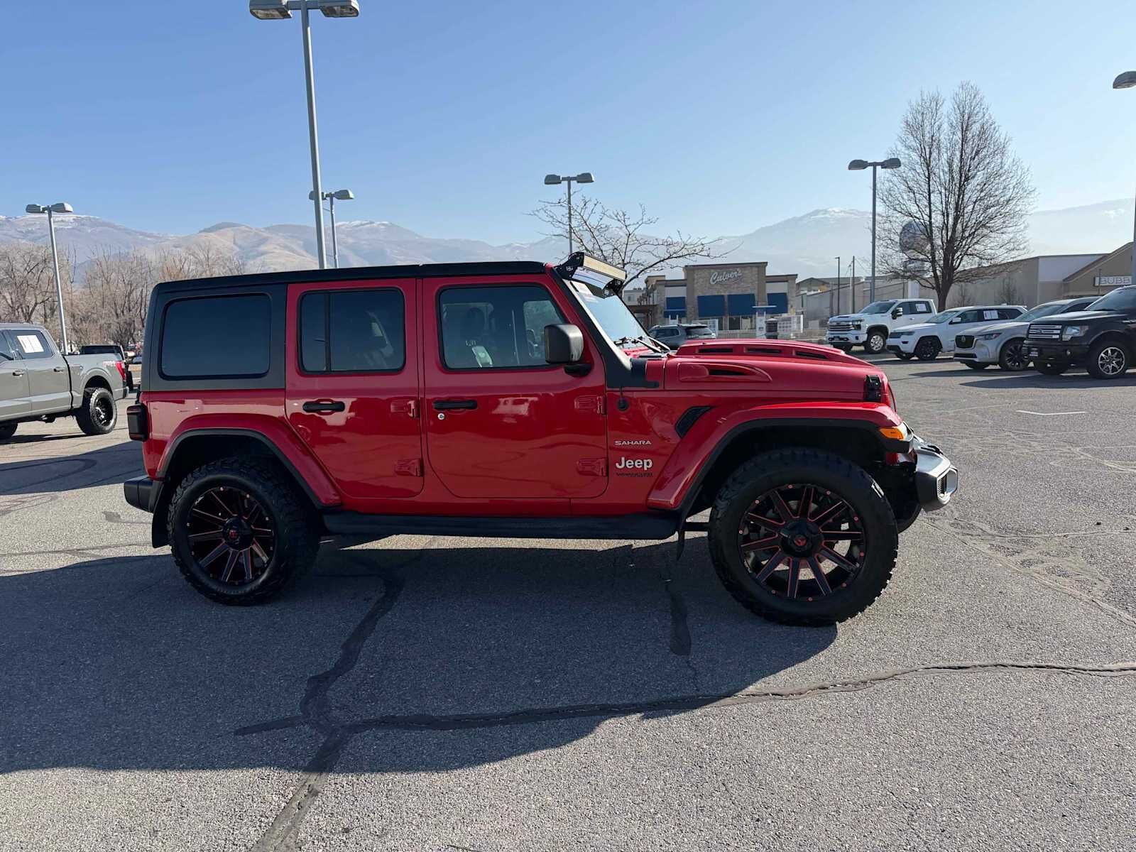 4x4, Back-Up Camera, Running Boards, iPod/MP3 Input, CD Player, Aluminum Wheels, Dual Zone A/C, Brake Actuated Limited Slip Differential MP3 Player, Privacy Glass, Steering Wheel Controls, Child Safety Locks. Non-Smoker vehicle Jeep Sahara with Firecracker Red Clearcoat exterior and Black interior features a 4 Cylinder Engine with 270 HP at 5250 RPM*.