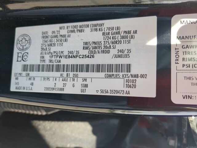 ENGINE: 3.5L V6 ECOBOOST -inc: GVWR: 7 050 lbs Payload Package 3.31 Axle Ratio,Four Wheel Drive,Power Steering,ABS,4-Wheel Disc Brakes,Brake Assist,Aluminum Wheels,Tires - Front All-Terrain,Tires - Rear All-Terrain,Conventional Spare Tire,Tow Hooks,Heated Mirrors,Power Mirror(s),Rear Defrost,Intermittent Wipers,Variable Speed Intermittent Wipers,Privacy Glass,Daytime Running Lights,Automatic Headlights,Fog Lamps,Automatic Highbeams,AM/FM Stereo,Cloth Seats,Split Bench Seat,Driver Adjustable Lumbar,Passenger Adjustable Lumbar,Pass-Through Rear Seat,Rear Bench Seat,Adjustable Steering Wheel,WiFi Hotspot,Keyless Entry,Cruise Control,A/C,Driver Vanity Mirror,Passenger Vanity Mirror,Floor Mats,Bluetooth Connection,Telematics,Immobilizer,Security System,Stability Control,Front Side Air Bag,Front Collision Mitigation,Driver Monitoring,Rear Parking Aid,Blind Spot Monitor,Cross-Traffic Alert,Rear Collision Mitigation,Lane Keeping Assist,Tire Pressure Monitor,Driver Air Bag,Passenger Air Bag,Passenger Air Bag Sensor,Driver Restriction Features,Front Head Air Bag,Rear Head Air Bag,Child Safety Locks,Back-Up Camera