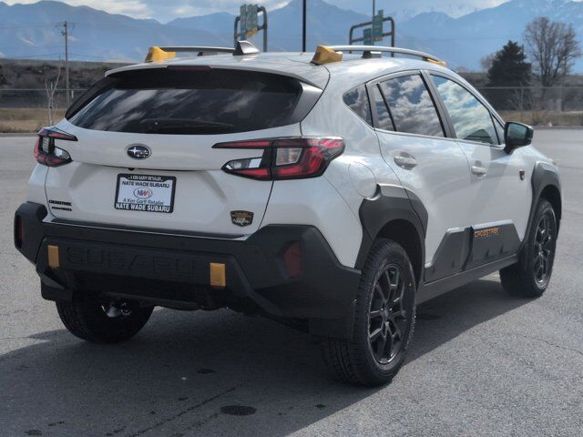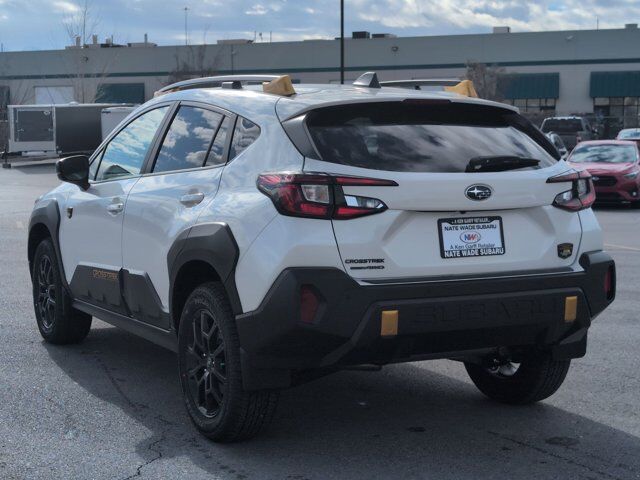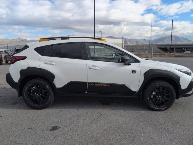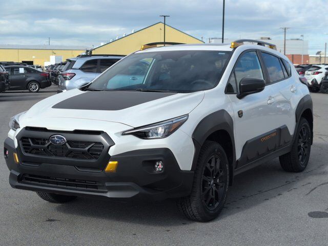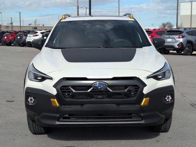 CRYSTAL WHITE PEARL,SPLASH GUARDS - WILDERNESS -inc: Part number J101SFN300,CROSSTREK MIRROR PACKAGE -inc: Auto-Dimming Mirror w/Compass & HomeLink Part number H501SFN000 Auto-Dimming Exterior Mirror w/Approach Light Part number J201SFN001,REAR BUMPER COVER - WILDERNESS -inc: Part number E771SFN100,BLACK WILDERNESS STARTEX UPHOLSTERY,HARMAN/KARDON AUD & PWR MOONROOF & PWR DRIVER SEAT -inc: 10-Way Power Driver's Seat 2-way lumbar support Power Moonroof tilt up and internal retracting w/auto-open/close and laminated UV and dark tint moonroof glass harman/kardon Speaker System 432 Watt equivalent maximum output amplifier and 10 speakers (4 stacked dash panel side coaxial speakers 2 front door speakers and 4 stacked subwoofer rear door coaxial speakers),All Wheel Drive,Power Steering,ABS,4-Wheel Disc Brakes,Brake Assist,Brake Actuated Limited Slip Differential,Aluminum Wheels,Tires - Front All-Terrain,Tires - Rear All-Terrain,Temporary Spare Tire,Heated Mirrors,Power Mirror(s),Integrated Turn Signal Mirrors,Rear Defrost,Privacy Glass,Intermittent Wipers,Variable Speed Intermittent Wipers,Rear Spoiler,Power Door Locks,Daytime Running Lights,Automatic Headlights,Headlights-Auto-Leveling,LED Headlights,Automatic Highbeams,Fog Lamps,AM/FM Stereo,Satellite Radio,MP3 Capability,Bluetooth Connection,Auxiliary Audio Input,HD Radio,Smart Device Integration,Requires Subscription,MP3 Capability,Steering Wheel Audio Controls,Bluetooth Connection,Bucket Seats,Heated Front Seat(s),Pass-Through Rear Seat,Rear Bench Seat,Adjustable Steering Wheel,Trip Computer,Power Windows,WiFi Hotspot,Leather Steering Wheel,Heated Steering Wheel,Keyless Entry,Power Door Locks,Keyless Start,Keyless Entry,Power Door Locks,Remote Trunk Release,Cruise Control,Adaptive Cruise Control,Climate Control,Multi-Zone A/C,A/C,Premium Synthetic Seats,Driver Vanity Mirror,Passenger Vanity Mirror,Driver Illuminated Vanity Mirror,Passenger Illuminated Visor Mirror,Floor Mats,Cargo Shade,Keyless Start,Smart Device Integration,Power Windows,Power Door Locks,Trip Computer,Security System,Immobilizer,Cruise Control Steering Assist,Traction Control,Stability Control,Traction Control,Front Side Air Bag,Lane Departure Warning,Lane Keeping Assist,Lane Departure Warning,Front Collision Mitigation,Driver Monitoring,Telematics,Requires Subscription,Blind Spot Monitor,Cross-Traffic Alert,Rear Collision Mitigation,Evasion Assist,Tire Pressure Monitor,Driver Air Bag,Passenger Air Bag,Front Head Air Bag,Rear Head Air Bag,Passenger Air Bag Sensor,Front Side Air Bag,Rear Side Air Bag,Knee Air Bag,Child Safety Locks,Back-Up Camera
