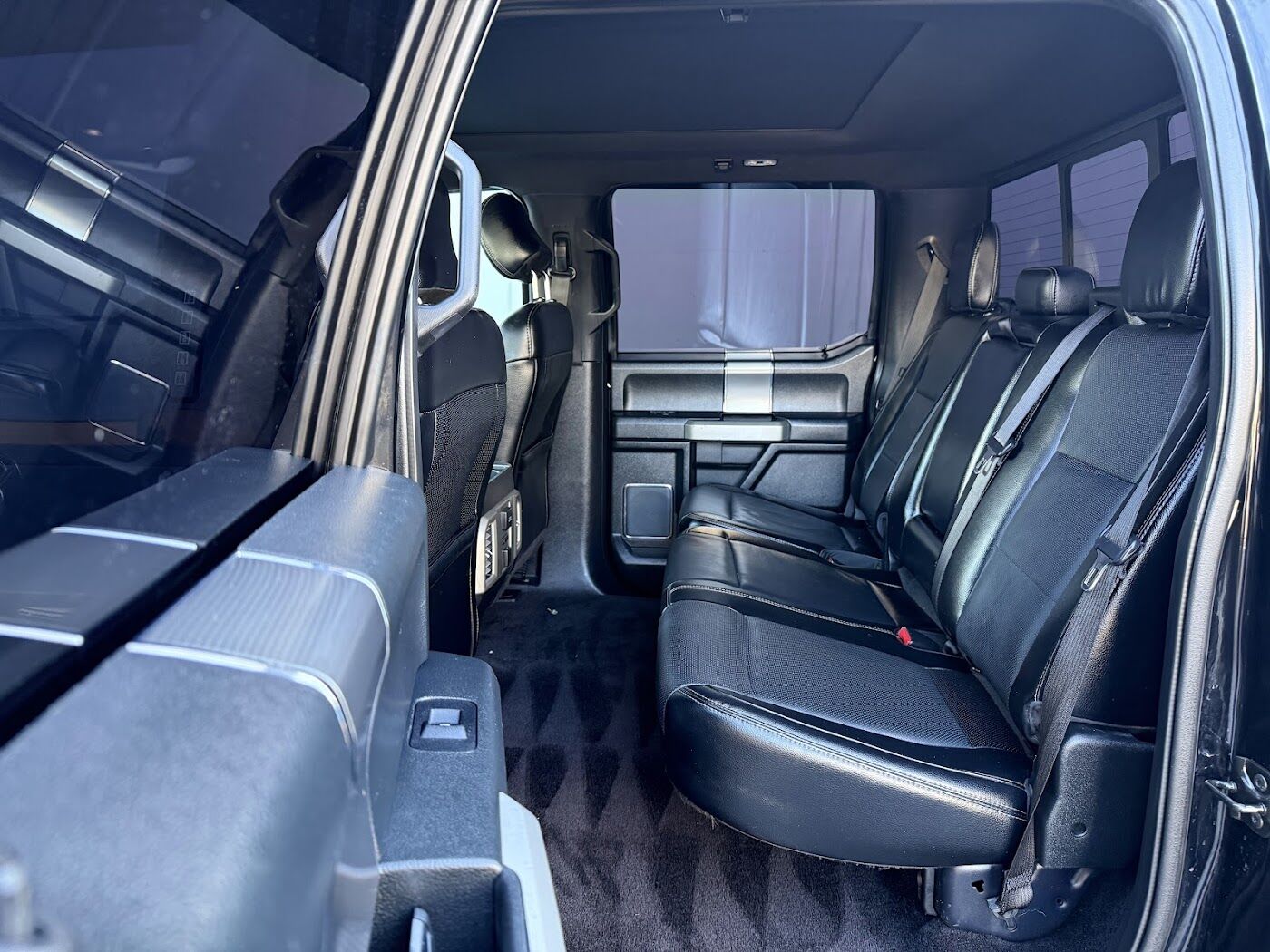 Interior: Premium Lariat trim with a massive Panoramic Sunroof that spans both rows.