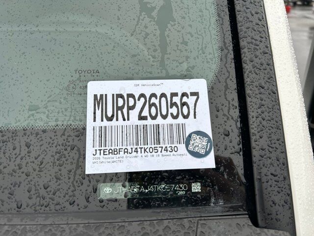Clean CARFAX. White 2026 Toyota Land Cruiser 4WD 8-Speed Automatic 2.4L 4-Cylinder FRESH TRADE, COMPLETE SERVICE AND INSPECTION JUST DONE, SUPER CLEAN, ** CERTIFIED **, **CLEAN CARFAX **, TOYOTA GUARD PLATINUM, 2.4L 4-Cylinder, JAVA SOFTEX Artificial Leather, Navigation system: Drive Connect Cloud Navigation (1-year trial subscription).Larry H Miller Toyota in Murray has been helping people with their vehicle purchase for over 40 years. Recent Arrival! Odometer is 2000 miles below market average!Thank you for choosing Larry Miller Toyota in Murray Utah for your next vehicle purchase. We have access to thousands of vehicles. For further questions or inquiries about this vehicle please call 1-801-264-3800 or come see us at 5650 South State Street in Murray Utah.''