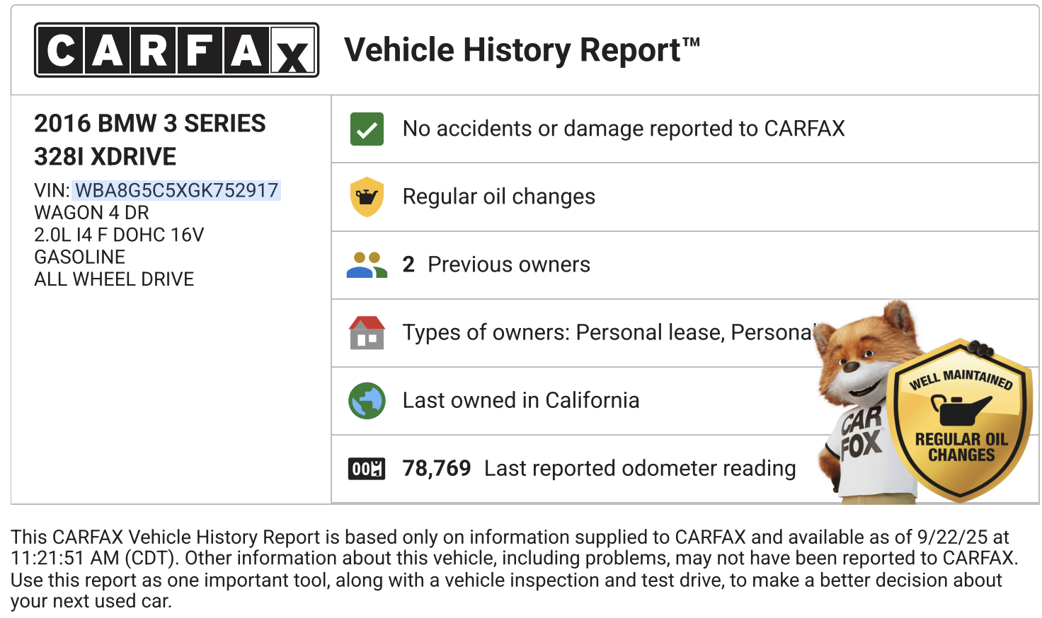 Rare F31 wagon in Alpine White with xDrive AWD - low mileage for the year. Clean CarFax, no accidents, second owner. Exclusively BMW dealer maintained.