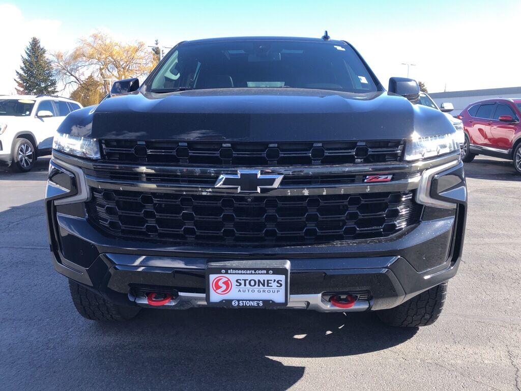 Max Trailering Package: Extra Capacity Cooling System,Advanced Trailering Package: Advanced Trailering System; Integrated Trailer Brake Controller; Hitch Guidance with Hitch View,Driver Alert Package: Lane Keep Assist with Lane Departure Warning; Rear Cross Traffic Alert; Front and Rear Park Assist; Lane Change Alert with Side Blind Zone Alert,Luxury Package: HD Surround Vision; Heated 2nd Row Outboard Seats; 2nd Row Power Release 60/40 Split-Folding Bench Seat; Memory Settings; Power Tilt and Telescopic Steering Column; Rear Pedestrian Alert; Automatic Heated Steering Wheel; 3rd Row 60/40 Power-Folding Split-Bench Seat; Outside Heated Power-Adjustable Mirrors,Z71 Signature Package: Dual-Pane Power Panoramic Sunroof,Preferred Equipment Group 2Z7: Bright Front and Rear Door Sill Plates; Leather Seat Trim; Remote Start; 3.23 Rear Axle Ratio; Hill Descent Control; 20" X 9" Machined Aluminum Wheels; 5.3L EcoTec3 V8 Engine; Floor Console with Storage Area; Black Tubular Assist Steps; 3,402 Kgs (7,500 Lbs) GVWR; LED Daytime Running Lamps; Driver and Front Outboard Passenger Airbags; Memory Settings For Driver; Premium Smooth Ride Suspension; Front High-Back Reclining Bucket Seats; Electronic 10-Speed Automatic Transmission with Overdrive; Universal Home Remote; Colour-Keyed Carpeting Floor Covering; Front Skid Plate; Front High-Approach Angle Fascia; Hands-Free Rear Power Programmable Liftgate; 2-Speed Active Electronic Autotrac Transfer Case; 1st and 2nd Row Colour-Keyed Carpeted Floor Mats; Chevrolet Infotainment 3 Plus System Radio; HD Radio; Red Horizontal-Mounted Recovery Hooks; SiriusXM Radio with 360L; Leather-Wrapped Steering Wheel; 275/60R20SL AT BW Tires; Infotainment Display; Auto-Dimming Inside Rearview Mirror; 2 USB Data Ports,Dual-Pane Power Panoramic Sunroof,Power Release 2nd Row Bucket Seats,Apple CarPlay/Android Auto smart device wireless mirroring,Automatic Emergency Braking forward collision mitigation,Front Pedestrian Braking,4G LTE Wi-Fi Hotspot capable mobile hotspot internet access,HD Rear Vision Camera rear mounted camera,Lane Keep Assist with Lane Departure Warning,Brake assist system,Cruise control with steering wheel mounted controls,Power liftgate rear cargo door,Keyfob remote start,Heated steering wheel,Heated driver and front passenger seats,Heated rear seats,Leather front seat upholstery,Primary monitor touchscreen,Fixed third-row seats,Rear Cross Traffic Alert collision warning,First and second-row sliding and tilting glass sunroof with express open/close activation sunshade,Driver seat power reclining, lumbar support, cushion tilt, fore/aft control and height adjustable control,Autotrac part and full-time 4WD,EcoTec3 5.3L V-8 gasoline direct injection, variable valve control, regular unleaded, engine with cylinder deactivation and 355HP,EcoTec3 5.3L V-8,Front wireless smart device charging,Teen Driver restricted driving mode/alerts,Rear Pedestrian Alert rear pedestrian detection warning,Smart key with hands-free access and push button start,HD Surround Vision aerial view camera,Front windshield solar coating,Smart device remote start,Push-button,Vehicle tracker with vehicle slowdown,Bluetooth wireless audio streaming,Hitch Guidance with Hitch View vehicle to trailer hitching assist,Proximity cargo area access release,Front mounted camera,Right side camera,Left side camera,Lane Change Alert with Side Blind Zone Alert blind spot warning,Following Distance Indicator,Trailer light malfunction warning,Dual-zone front climate control,Rear climate control system with separate controls,IntelliBeam auto high-beam headlights,Power fold into floor third-row seat,Immobilizer,Bose speakers,OnStar and Chevrolet connected services capable vehicle integrated emergency SOS system,Bluetooth handsfree wireless device connectivity,Trailer brake controller,Trailer sway control