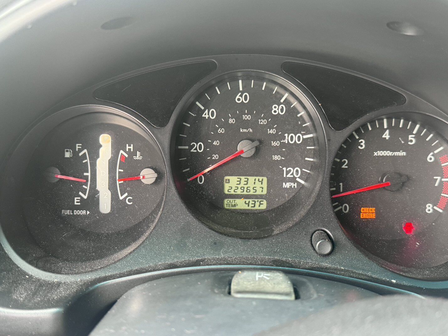 Check engine light is on. I haven’t diagnosed it yet, but the car runs and drives fine.