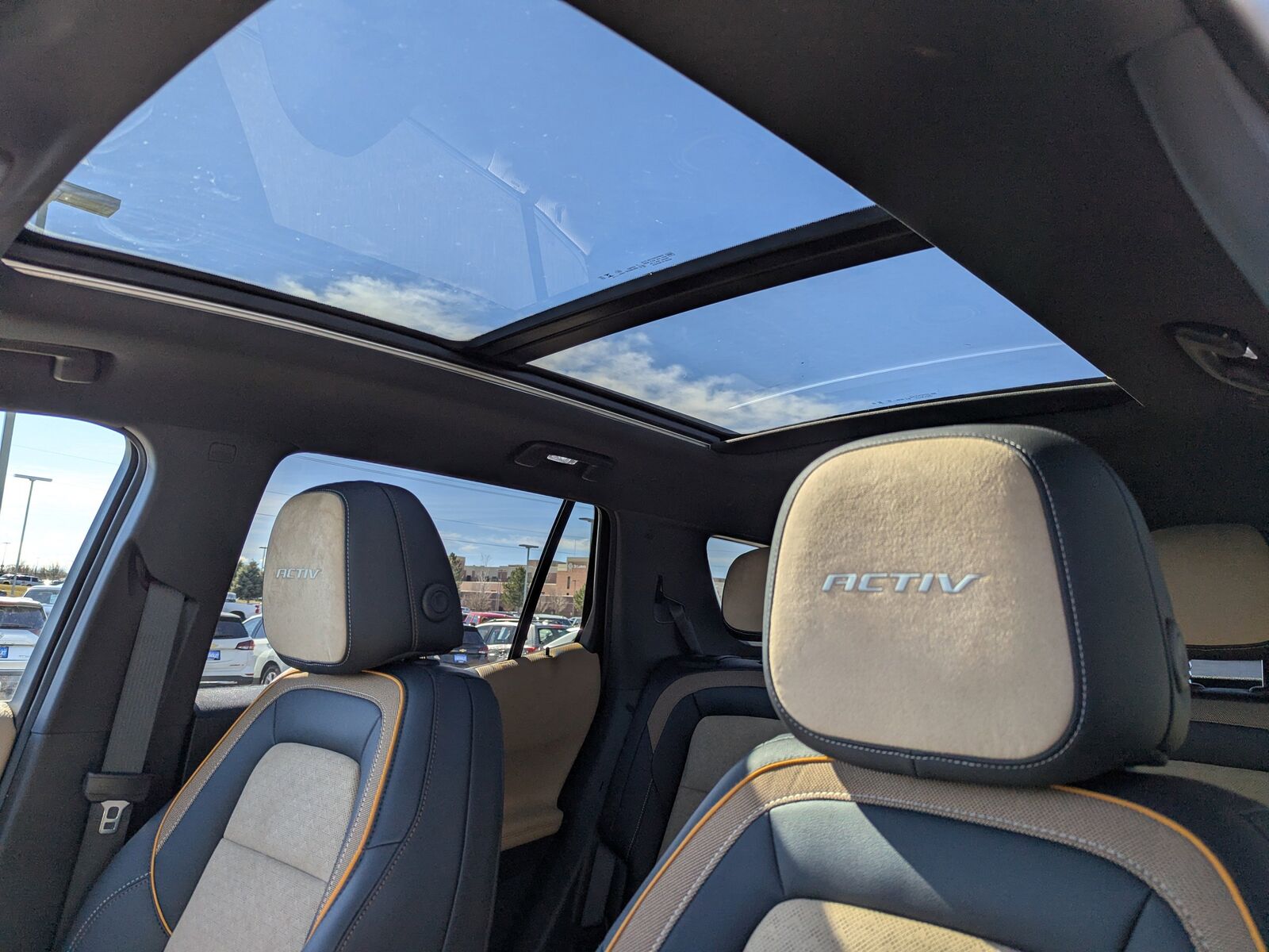 LICENSE PLATE FRONT MOUNTING PACKAGE,LPO ALL-WEATHER FLOOR LINERS,SUNROOF POWER DUAL GLASS PANORAMIC SLIDING with power sunshade,AXLE 3.47 FINAL DRIVE RATIO,REAR CAMERA MIRROR,REAR PEDESTRIAN ALERT,SEATS HEATED REAR OUTBOARD POSITIONS,ENGINE 1.5L TURBO DOHC 4-CYLINDER SIDI VVT (STD),LPO CARGO MAT,LPO SECOND ROW ALL-WEATHER MAT,HD SURROUND VISION,CONVENIENCE PACKAGE III includes (A7K) 8-way power front passenger seat adjuster (KU1) ventilated driver seat (KU3) ventilated front passenger seat (KA6) heated rear outboard seats (AT9) 2-way power front passenger lumbar seat adjuster and (A45) memory settings,SAFETY AND TECHNOLOGY PACKAGE includes (DRZ) Rear Camera Mirror (T3U) front fog lamps (UKK) Rear Pedestrian Alert (UV2) HD Surround Vision and (UVX) Traffic Sign Recognition.,TRANSMISSION 8-SPEED AUTOMATIC (STD),MEMORY SETTINGS includes presets for seat adjuster outside rearview mirror and driver personalization,SEAT ADJUSTER FRONT PASSENGER 8-WAY POWER,SEATS FRONT BUCKET (STD),LPO FLOOR LINER PACKAGE Includes (RIA) All-weather floor liners LPO (RIS) Second Row All-weather mat LPO and (VLI) Cargo mat LPO.,WHEELS 17 (43.2 CM) DARK ANDROID MACHINED-FACE ALUMINUM (STD),SEAT VENTILATED DRIVER,SEAT ADJUSTER FRONT PASSENGER 2-WAY POWER LUMBAR,FOG LAMPS FRONT,ACTIV PREFERRED EQUIPMENT GROUP includes standard equipment,RADIANT RED TINTCOAT,SEAT VENTILATED FRONT PASSENGER,LPO FRONT AND REAR SPLASH GUARDS CUSTOM MOLDED,MAPLE SUGAR SUEDED MICROFIBER SEAT TRIM,REAR CAMERA MIRROR WASHER,TRAFFIC SIGN RECOGNITION,Climate Control,Multi-Zone A/C,A/C,Power Driver Seat,Intermittent Wipers,Variable Speed Intermittent Wipers,Rain Sensing Wipers,Driver Adjustable Lumbar,Remote Trunk Release,Universal Garage Door Opener,Power Liftgate,Hands-Free Liftgate,Heated Front Seat(s),Driver Vanity Mirror,Passenger Vanity Mirror,Driver Illuminated Vanity Mirror,Passenger Illuminated Visor Mirror,Remote Engine Start,Heated Steering Wheel,Lane Departure Warning,Lane Keeping Assist,Front Collision Mitigation,Front Collision Warning,Automatic Highbeams,Turbocharged,All Wheel Drive,4-Wheel Disc Brakes,Aluminum Wheels,Tires - Front All-Terrain,Tires - Rear All-Terrain,Temporary Spare Tire,Automatic Highbeams,Privacy Glass,Privacy Glass,Heated Mirrors,Power Mirror(s),Intermittent Wipers,Variable Speed Intermittent Wipers,Rain Sensing Wipers,Remote Trunk Release,Power Liftgate,Hands-Free Liftgate,MP3 Capability,Bluetooth Connection,Auxiliary Audio Input,Satellite Radio,Requires Subscription,WiFi Hotspot,Bluetooth Connection,Smart Device Integration,MP3 Capability,Auxiliary Audio Input,Bucket Seats,Premium Synthetic Seats,Heated Front Seat(s),Power Driver Seat,Power Driver Seat,Driver Adjustable Lumbar,Floor Mats,Floor Mats,Heated Steering Wheel,Adjustable Steering Wheel,Passenger Air Bag Sensor,AM/FM Stereo,Navigation System,Bluetooth Connection,Auxiliary Audio Input,Smart Device Integration,Power Windows,Keyless Entry,Power Door Locks,Keyless Start,Remote Engine Start,Cruise Control,Adaptive Cruise Control,Universal Garage Door Opener,Security System,Climate Control,Multi-Zone A/C,A/C,Rear Defrost,Driver Vanity Mirror,Passenger Vanity Mirror,Driver Illuminated Vanity Mirror,Passenger Illuminated Visor Mirror,Brake Assist,Front Collision Mitigation,Front Collision Warning,Front Collision Mitigation,Front Collision Warning,Driver Air Bag,Passenger Air Bag,Front Side Air Bag,Front Head Air Bag,Rear Head Air Bag,Passenger Air Bag Sensor,Passenger Air Bag Sensor,Telematics,Requires Subscription,Telematics,Navigation from Telematics,Requires Subscription,Rear Parking Aid,Back-Up Camera,Front Collision Warning,Cross-Traffic Alert,Rear Collision Mitigation,Blind Spot Monitor,Evasion Assist,Lane Departure Warning,Lane Keeping Assist,Passenger Air Bag Sensor,Driver Restriction Features