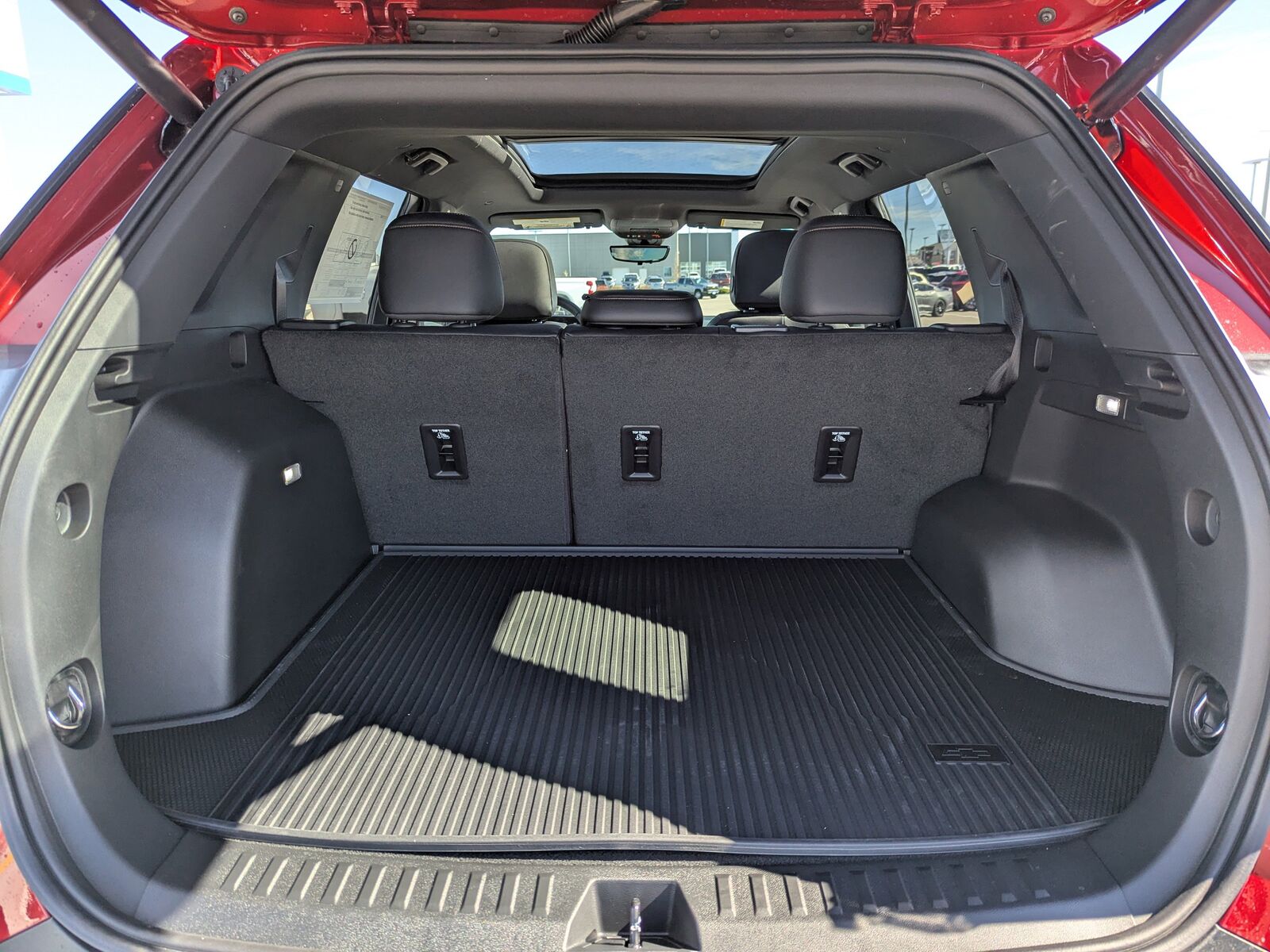 AWD, 2-Way Power Driver Lumbar Control Seat Adjuster, 3.47 Final Drive Axle Ratio, 4-Wheel Disc Brakes, 6 Speakers, ABS brakes, Air Conditioning, All-Weather Floor Liners, Alloy wheels, AM/FM radio: SiriusXM, Auto High-beam Headlights, Automatic temperature control, Brake assist, Bumpers: body-color, Cargo Mat, Compass, Convenience Package III, Custom Molded Front and Rear Splash Guards, Delay-off headlights, Driver 8-Way Power Seat Adjuster, Driver door bin, Driver vanity mirror, Dual front impact airbags, Dual front side impact airbags, Electronic Stability Control, Emergency communication system: OnStar and Chevrolet connected services capable, Floor Liner Package, Four wheel independent suspension, Front anti-roll bar, Front Bucket Seats, Front Center Armrest, Front dual zone A/C, Front Fog Lamps, Front Passenger 2-Way Power Lumbar Seat Adjuster, Front Passenger 4-Way Manual Seat Adjuster, Front Passenger 8-Way Power Seat Adjuster, Front reading lights, Fully automatic headlights, Garage door transmitter, HD Surround Vision, Heated door mirrors, Heated Driver and Front Passenger Seats, Heated front seats, Heated Rear Outboard Seating Positions, Heated steering wheel, Illuminated entry, Low tire pressure warning, Memory Settings, Navigation System, Occupant sensing airbag, Outside temperature display, Overhead airbag, Overhead console, Panic alarm, Passenger door bin, Passenger vanity mirror, Power door mirrors, Power driver seat, Power Dual Glass Panoramic Sliding Sunroof, Power Liftgate, Power steering, Power windows, Preferred Equipment Group KDZ, Premium audio system: Chevrolet Infotainment 3 Plus, Radio data system, Radio: 11.3 Diagonal Advanced Color LCD Display, Rain sensing wipers, Rear anti-roll bar, Rear Camera Mirror Washer, Rear Pedestrian Alert, Rear reading lights, Rear seat center armrest, Rear window defroster, Rear window wiper, Remote keyless entry, Safety and Technology Package, Second Row All-Weather Mat, Security system, SiriusXM with 360L Trial Subscription, Speed control, Speed-sensing steering, Split folding rear seat, Spoiler, Steering wheel mounted audio controls, Sueded Microfiber Seat Trim, Tachometer, Telescoping steering wheel, Tilt steering wheel, Traction control, Traffic Sign Recognition, Trip computer, Variably intermittent wipers, Ventilated Driver Seat, Ventilated Front Passenger Seat, Wheels: 17 Dark Android Painted Machined-Face, AWD.