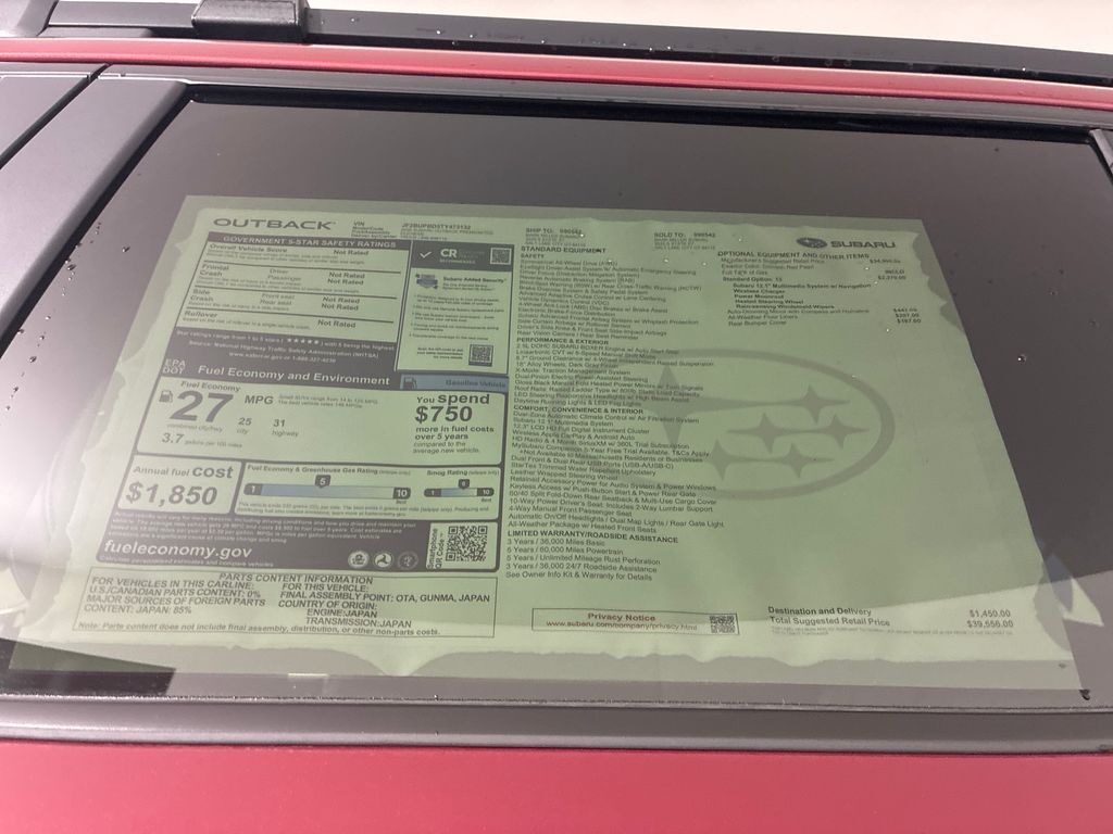 2026 Crimson Red Pearl Subaru Outback Factory MSRP: $39,556