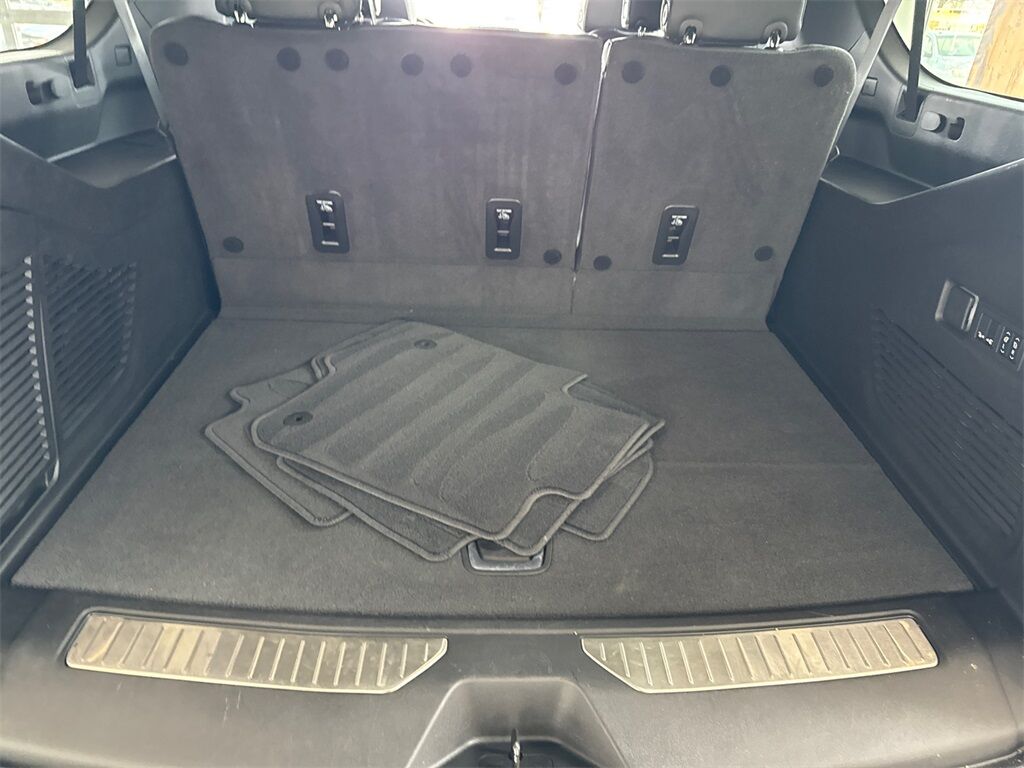 10 Speakers, 12-Way Power Driver & Passenger Seat Adjusters, 1st & 2nd Row Color-Keyed Carpeted Floor Mats, 2-Speed Active Electronic AutoTrac Transfer Case, 20'' x 9'' Polished Aluminum Wheels, 3.23 Rear Axle Ratio, 3rd Row 60/40 Power-Folding Split-Bench, 3rd row seats: split-bench, 4-Wheel Disc Brakes, ABS brakes, Adaptive suspension, Air Conditioning, Alloy wheels, AM/FM radio: SiriusXM with 360L, Apple CarPlay/Android Auto, Auto High-beam Headlights, Auto-dimming door mirrors, Auto-Dimming Inside Rear-View Mirror, Auto-dimming Rear-View mirror, Auto-leveling suspension, Automatic temperature control, Bose 10-Speaker Surround w/CenterPoint, Brake assist, Bright Front & Rear Door Sill Plates, Bumpers: body-color, Chrome Door Handles w/Body-Color Strip, Chrome Mirror Caps, Color-Keyed Carpeting Floor Covering, Compass, Delay-off headlights, Driver & Front Outboard Passenger Airbags, Driver door bin, Driver vanity mirror, Dual Exhaust System, Dual front impact airbags, Dual front side impact airbags, Electronic Stability Control, Emergency communication system: OnStar and Chevrolet connected services capable, Enhanced Driver Information Center, Floor Console, Four wheel independent suspension, Front anti-roll bar, Front Bucket Seats, Front Center Armrest, Front dual zone A/C, Front reading lights, Fully automatic headlights, Garage door transmitter, Hands-Free Rear Power Programmable Liftgate, Heated 2nd Row Outboard Seats, Heated door mirrors, Heated Driver & Front Passenger Seats, Heated front seats, Heated rear seats, Heated Steering Wheel, Heated steering wheel, Hill Descent Control, Illuminated entry, Infotainment Display, Lane Change Alert w/Side Blind Zone Alert, LED Daytime Running Lamps, Low tire pressure warning, Magnetic Ride Control Suspension, Memory seat, Memory Settings, Navigation System, Occupant sensing airbag, Outside Heated Power-Adjustable Mirrors, Outside temperature display, Overhead airbag, Overhead console, Panic alarm, Passenger door bin, Passenger vanity mirror, Perforated Heated & Ventilated Seats, Perforated Leather Seating Surfaces, Power door mirrors, Power driver seat, Power Liftgate, Power passenger seat, Power Release 2nd Row Bucket Seats, Power steering, Power Tilt & Telescopic Steering Column, Power windows, Premium audio system: Chevrolet Infotainment 3 Premium, Radio: Chevrolet Infotainment 3 Premium System, Rain sensing wipers, Rear air conditioning, Rear anti-roll bar, Rear Cross Traffic Alert, Rear reading lights, Rear window defroster, Rear window wiper, Remote keyless entry, Remote Start, Roof rack: xxxxxx, Safety Alert Seat, Security system, SiriusXM w/360L, Speed control, Speed-sensing steering, Split folding rear seat, Spoiler, Steering wheel memory, Steering wheel mounted audio controls, Tachometer, Telescoping steering wheel, Tilt steering wheel, Traction control, Trip computer, Turn signal indicator mirrors, Universal Home Remote, Variably intermittent wipers, Ventilated front seats, Voltmeter, Wireless Charging, Wrapped Steering Wheel.