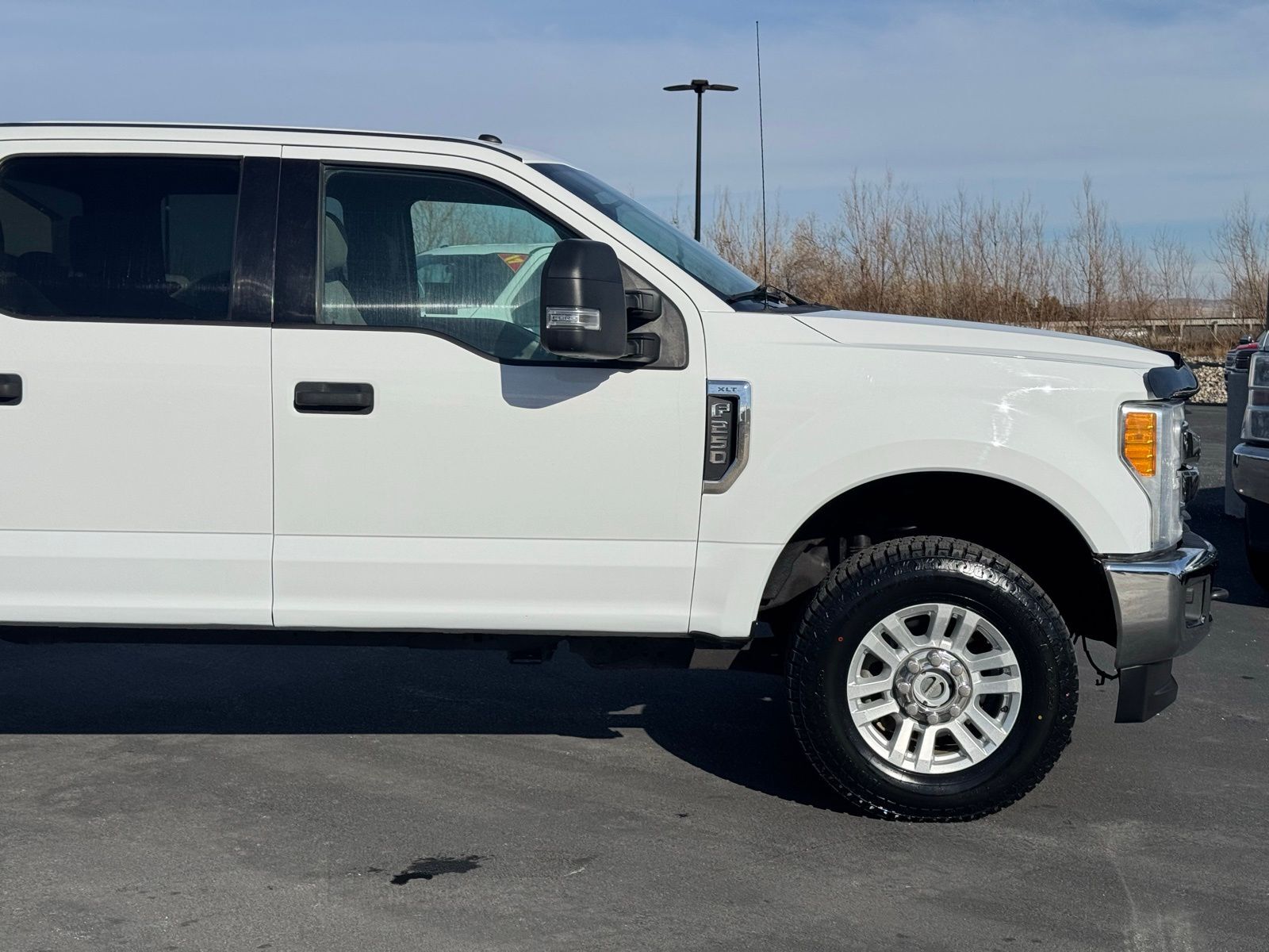 White 2017 Ford F-250SD XLT 4D Crew Cab 2017 4WD, ABS brakes, Alloy wheels, Compass, Electronic Stability Control, Heated door mirrors, Illuminated entry, Low tire pressure warning, Remote keyless entry, Traction control. XLT 6-Speed Automatic Ford 6.2L V8 EFI SOHC 16V Flex Fuel F-250SD 4WD