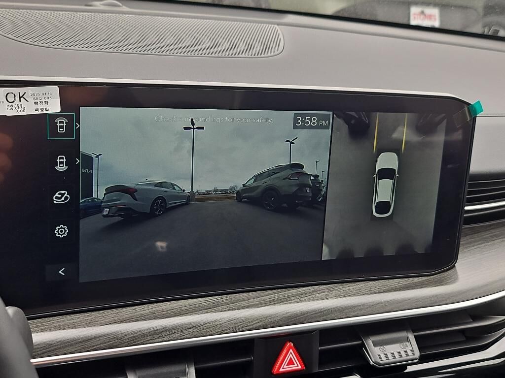 Wireless Apple CarPlay & Android Auto smart device wireless mirroring,Highway Driving Assist (HDA) hands-on cruise control,Pedestrian Detection,Navigation-based Smart Cruise Control - Curve (NSCC-C) Automatic curve slowdown cruise control,Rear View Monitor with Parking Guidance rear mounted camera,Lane Departure Warning System (LDWS),Parking Collision Avoidance-Assist - Reverse (PCA-R),Smart Cruise Control with Stop & Go (SCC w/S&G),Brake assist system,Cruise control with steering wheel mounted controls,Smart device and keyfob engine start control,Ventilated driver and front passenger seats,Integrated navigation system with voice activation,Heated steering wheel,Heated driver and front passenger seats,SynTex leatherette front seat upholstery,Primary monitor touchscreen,First and second-row sliding and tilting glass sunroof with express open/close activation sunshade,Driver seat power reclining, lumbar support, cushion tilt, fore/aft control and height adjustable control,2.5L I-4 port/direct injection, DOHC, variable valve control, regular unleaded, engine with 191HP,Front wireless smart device charging,Forward Collison-Avoidance Assist (FCA-JT: Cyc/Ped/Junction Turning) forward collision mitigation with left turn assist,Driver Attention Warning (DAW),Restricted driving mode,Smart Key with hands-free access and push button start,Surround View Monitor (SVM) aerial view camera,Blind-Spot View Monitor (BVM) left and right blind spot view,Front windshield solar coating,Automatic brake hold,Bluetooth wireless audio streaming,Power rear child safety door locks,Gage cluster display size: 12.30,Smart Trunk proximity cargo area access release,Front mounted camera,Right side camera,Left side camera,Blind-Spot Collision-Avoidance Assist (BCA) blind spot warning,Safe Exit Assist (SEA) w/Lock external exit warning system,Dual-zone front climate control,Full gage cluster screen,High Beam Assist (HBA) auto high-beam headlights,Immobilizer,Vehicle tracker,Bose speakers,Kia Connect (includes 1 year free trial) vehicle integrated emergency SOS system,Bluetooth handsfree wireless device connectivity,External memory control,5 USB ports,Configurable instrumentation gauges,Chrome rear bumper insert,4-Cyl; GDI; 2.5 Liter,Automatic; 8-Spd,FWD,Blind-Spot Collision Avoidance Assist,Hill Start Assist,Traction Control,Electronic Stability Control,ABS (4-Wheel),Keyless Entry,Push Button Start,Air Conditioning,Power Windows,Power Door Locks,Smart Cruise Control,Power Steering,Tilt & Telescoping Wheel,AM/FM Stereo,Bose Premium Sound System,Satellite Feature,Navigation System,Bluetooth Wireless,Telematics,Parking Sensors,Backup Camera,Surround View Camera,Dual Air Bags,F&R Side Air Bags,F&R Head Curtain Air Bags,Knee Air Bags,Collision Avoidance Assist,Lane Keep Assist,Heated Seats,Ventilated Seats,Power Seat,Panorama Roof,Daytime Running Lights,LED Headlamps,Alloy Wheels