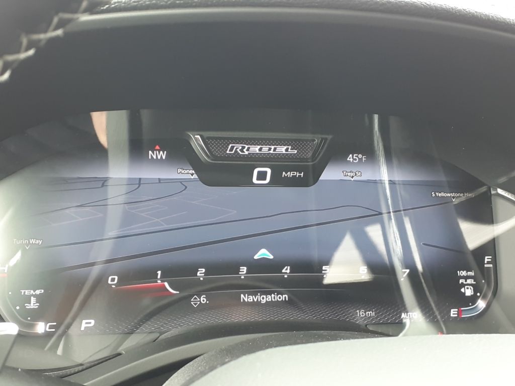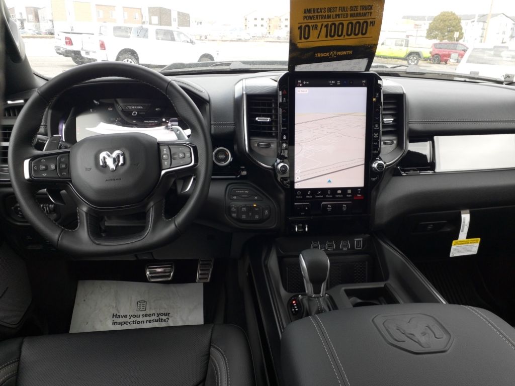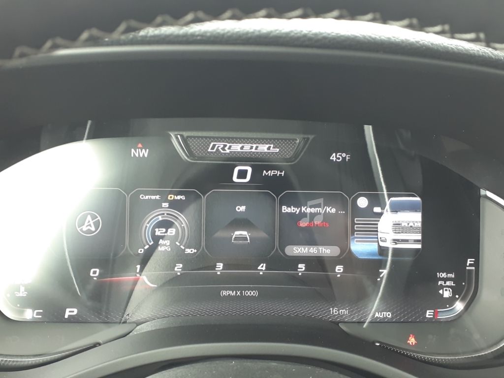 G/T Package: Floor Console; Under Seat Lighting; Leather/vinyl Bucket Seats; G/T Decal; Leather Wrapped Shift Knob; Leather-Wrapped Steering Wheel; Steering Wheel Mounted Shift Control; G/T Exhaust; GT Interior Theme; MOPAR Bright Pedal Kit; Performance Pages. Quick Order Package 21W Rebel. Rebel Level 2 Equipment Group: Google Android Auto; SiriusXM Radio Service; USB Host Flip; Rear Window Defroster; Rain Sensitive Windshield Wipers; Integrated Center Stack Radio; Power Adjustable Pedals with Memory; Front Passenger Interactive Display; Integrated Voice Command with Bluetooth; Connectivity - US/Canada; Auto Power-Folding Mirrors; GPS Navigation; 4G LTE Wi-Fi Hot Spot; 115V Auxiliary Rear Power Outlet; GPS Antenna Input; Media Hub with 2 Charge Only USBs; Exterior Mirrors with Heating Element; Proximity Approach/departure Lamps; Auto Dim Exterior Driver Mirror; SiriusXM with 360L; Accent Color Door Handles; Global Telematics Box Module; Connected Travel and Traffic Services; Heated Second Row Seats; Power Adjust 8-Way Front Passenger Seat; Security Alarm; Apple CarPlay; Black Painted Exterior Mirrors Caps; Off-Road Information Pages; Exterior Mirrors Approach Lamps; Disassociated Touchscreen Display; HD Radio; Smartphone as a Key Capable; 14.4" Touchscreen Display; Accent Color Premium Power Mirrors; Dual Wireless Charging Pad; Exterior Mirrors with Supplemental Signals; Exterior Mirrors Courtesy Lamps; Uconnect 5 Nav with 14.4" Display; Harman/kardon 19 Speaker Premium Sound; 2-Door Passive Entry. Front Door Locks; Accent Color Tailgate Handle; Exterior Mirrors with Memory; Driver Seat Memory; Power Tailgate; Convex Wide-Angle Exterior Mirror Insert; Radio/driver Seat/mirrors/pedals Memory. RamBox Cargo Management System. Trailer Brake Control. Forged Blue Metallic. Forged Blue Metallic. MyFlexCare Service Plan. Equipment listed is based on original vehicle build and subject to change. Please confirm the accuracy of the included equipment by calling the dealer prior to purchase.