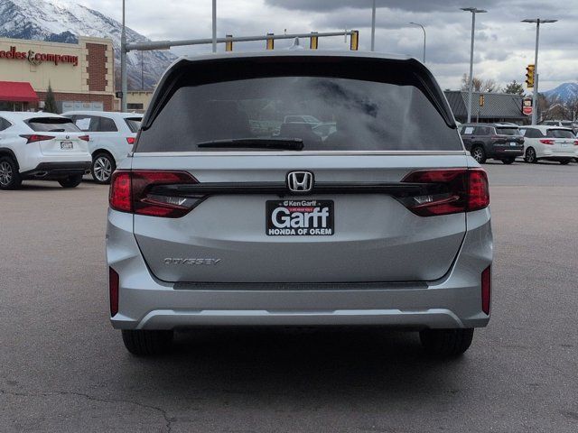 Ken Garff Honda is pumped up to offer this great-looking 2026 Honda Odyssey EX-L in Solar Silver Metallic. FWD EX-L 10-Speed Automatic18 Machine-Finished Alloy Wheels, 3rd row seats: split-bench, 4-Wheel Disc Brakes, 7 Speakers, ABS brakes, Adaptive Cruise Control: Adaptive Cruise Control (ACC) with Low-Speed Follow, Air Conditioning, Alloy wheels, AM/FM radio: SiriusXM, Anti-whiplash front head restraints, Apple CarPlay/Android Auto, Auto High-beam Headlights, Auto-dimming Rear-View mirror, Automatic temperature control, Blind Spot Information (BSI) System warning, Brake assist, Bumpers: body-color, Delay-off headlights, Driver door bin, Driver vanity mirror, Driver's Seat Mounted Armrest, Dual front impact airbags, Dual front side impact airbags, Electronic Stability Control, Exterior Parking Camera Rear, Four wheel independent suspension, Front anti-roll bar, Front Bucket Seats, Front dual zone A/C, Front fog lights, Front reading lights, Fully automatic headlights, Garage door transmitter: HomeLink, Heated door mirrors, Heated Front Bucket Seats, Heated front seats, Illuminated entry, Knee airbag, Lane departure: Lane Keeping Assist System (LKAS) active, Leather steering wheel, Leather-Trimmed Seats, Low tire pressure warning, Memory seat, Occupant sensing airbag, Outside temperature display, Overhead airbag, Overhead console, Panic alarm, Passenger door bin, Passenger seat mounted armrest, Passenger vanity mirror, Power door mirrors, Power driver seat, Power Liftgate, Power moonroof, Power passenger seat, Power steering, Power windows, Radio data system, Radio: 160-Watt AM/FM/HD/SiriusXM Audio System, Rear air conditioning, Rear anti-roll bar, Rear reading lights, Rear seat center armrest, Rear window defroster, Rear window wiper, Reclining 3rd row seat, Remote keyless entry, Security system, Speed control, Speed-sensing steering, Speed-Sensitive Wipers, Split folding rear seat, Spoiler, Steering wheel mounted audio controls, Tachometer, Telescoping steering wheel, Tilt steering wheel, Traction control, Trip computer, Turn signal indicator mirrors, Variably intermittent wipers.19/28 City/Highway MPG Fuel Economy estimates are based on EPA mileage ratings. Actual mileage will vary depending on driving conditions, habits, vehicle maintenance, and other factors. Advertised Prices do not include any dealer installed options and advertised prices exclude leases.