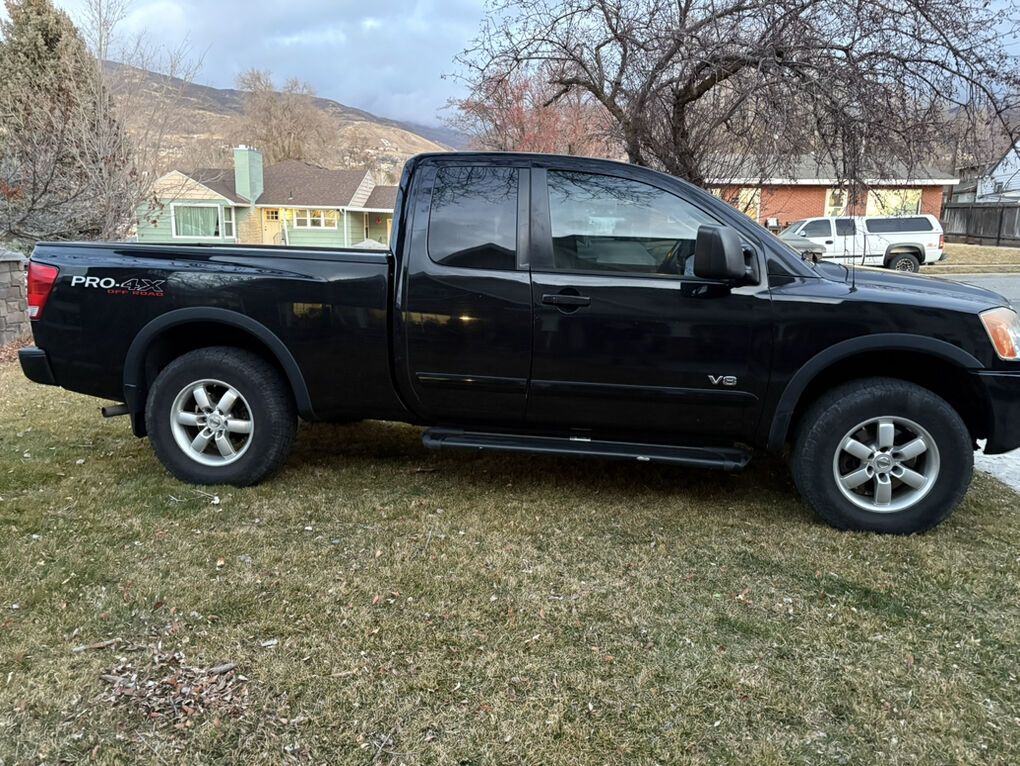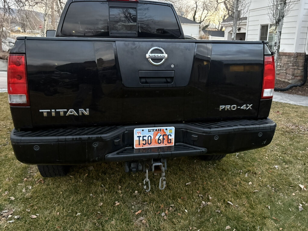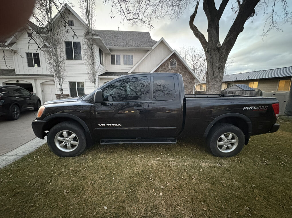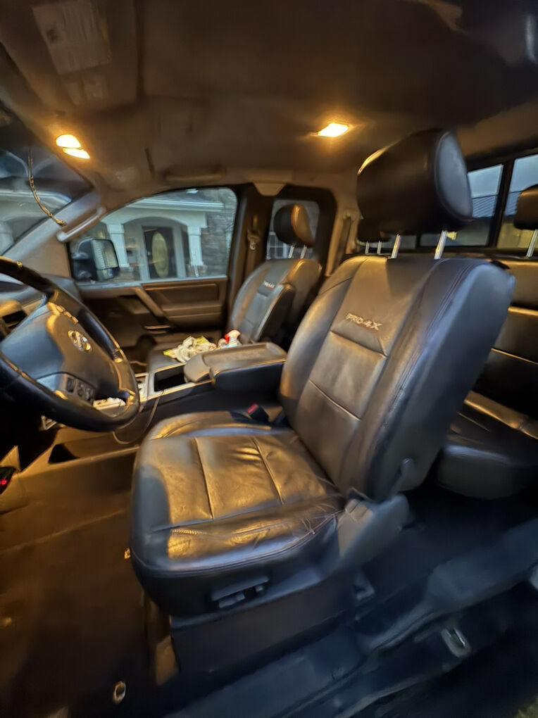2010 Nissan Titan Pro 4X, 127500 miles, 4X4, Leather, premium sound, cruise, PL, PW, PS, spray in bed liner, tow package, load bags, brake controller. Interior in great shape. Exterior has couple dings, it is 16 yrs old, rust free, drives straight, BIG O AT’s have about 30% on them. Engine is strong, just did the spark plugs, air filter, cab filter, brake flush, pads, rotors, bilsten 5100 shocks and struts and 4k just spent on rebuild of rear axle. Receipts for all work. Branded Title from light front end accident 3.5 yrs ago.