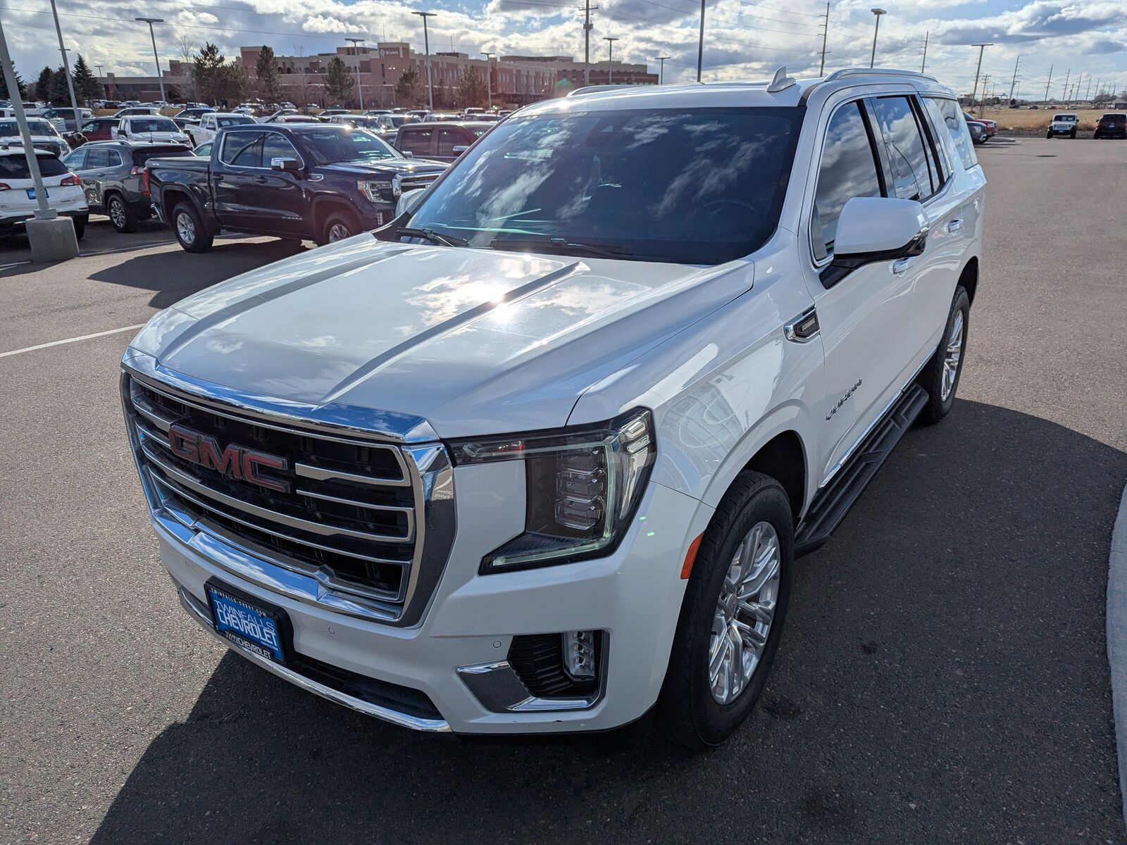 HEATER AIR SYSTEM HEAT/DEFROST 1.5KW,LPO ILLUMINATED FRONT GMC EMBLEM (dealer-installed),REAR AXLE 3.23 RATIO,SLT LUXURY PACKAGE includes (UV2) HD Surround Vision (UKK) Rear Pedestrian Alert (A45) memory settings (DXR) outside heated power-adjustable power-folding body-color mirrors with driver-side auto-dimming and integrated turn signal indicators (N38) power tilt and telescopic steering column (KI3) automatic heated steering wheel (KA6) second row outboard heated seats (ATT) second row power 60/40 split-folding bench seats and (AS8) third row power 60/40 splitfolding bench seats,LPO ILLUMINATED MIRROR GMC EMBLEM (dealer-installed),SEATS SECOND ROW BUCKET POWER RELEASE,SLT PREFERRED EQUIPMENT GROUP Includes Standard Equipment,SEATS THIRD ROW 60/40 SPLIT-BENCH POWER-FOLDING,ENGINE DURAMAX 3.0L TURBO-DIESEL I6 (277 hp [206.6 kW] @ 3750 rpm 460 lb-ft of torque [623.7 N-m] @ 1500 rpm),TRANSMISSION 10-SPEED AUTOMATIC electronically controlled with overdrive includes Traction Select System including tow/haul (Most vehicles built on or after 6-7-2021 with a V8 engine will have (NSS) Not Equipped with Automatic Stop/Start which removes Automatic Stop/Start Engine control stop/start disable button and its content.) (STD),AUDIO SYSTEM 10.2 DIAGONAL GMC INFOTAINMENT SYSTEM WITH NAVIGATION includes multi-touch display AM/FM/SiriusXM stereo Bluetooth streaming audio for music and most phones Android Auto and Apple CarPlay capability for compatible phones advanced voice recognition in-vehicle apps personalized profiles for infotainment and vehicle settings,BATTERY 900 COLD-CRANKING AMPS WITH 95 AMP HOUR RATING,WHITE FROST TRICOAT,ENGINE BLOCK HEATER,LPO ILLUMINATION PACKAGE includes (RN2) Illuminated front GMC emblem LPO and (S3I) Illuminated mirror GMC emblem LPO (dealer-installed),STEERING COLUMN POWER TILT AND TELESCOPIC,REAR SEAT MEDIA SYSTEM includes dual rear seat-mounted 12.6 diagonal color-touch LCD HD screens Wi-Fi wireless projection capability two 2-channel wireless infrared digital headphones with 2 HDMI ports on the back of the center console; compatible with Bluetooth headphones,HD SURROUND VISION,SEATS FRONT BUCKET (STD),STEERING WHEEL HEATED AUTOMATIC,INTERIOR TRIM JET BLACK,LICENSE PLATE FRONT MOUNTING PACKAGE (Included on orders with ship-to states that require a front license plate.),FUEL DIESEL B20,SUNROOF POWER PANORAMIC DUAL-PANE tilt-sliding with express-open and close and power sunshade,TIRES 275/60R20SL ALL-SEASON BLACKWALL (STD),ACTIVE AERO SHUTTERS UPPER AND LOWER,MIRRORS OUTSIDE HEATED POWER-ADJUSTABLE POWER-FOLDING driver-side auto-dimming integrated turn signal indicators and puddle lighting,JET BLACK PERFORATED LEATHER SEATING SURFACES (1st and 2nd rows only.),MEMORY SETTINGS recalls 2 driver presets for power driver seat outside rearview mirrors and power and tilt and telescopic steering column,SEATS HEATED SECOND ROW OUTBOARD POSITIONS,REAR MEDIA AND NAV PACKAGE includes (UW9) Rear Seat Media System and (IOT) 10.2 diagonal GMC Infotainment System with Navigation,REAR PEDESTRIAN ALERT,SLT PREMIUM PACKAGE includes (WPL) SLT Luxury Package content and (C3U) Panoramic power sunroof,WHEELS 20 X 9 (50.8 CM X 22.9 CM) 6-SPOKE POLISHED ALUMINUM (STD),ALTERNATOR 250 AMPS,GVWR 7700 LBS. (3493 KG),Rear Parking Aid,Blind Spot Monitor,Lane Departure Warning,Cross-Traffic Alert,Lane Keeping Assist,Front Collision Mitigation,Front Collision Warning,Automatic Highbeams,Keyless Start,Locking/Limited Slip Differential,Four Wheel Drive,Tow Hitch,Air Suspension,Power Steering,ABS,4-Wheel Disc Brakes,Aluminum Wheels,Tires - Front All-Season,Tires - Rear All-Season,Conventional Spare Tire,Conventional Spare Tire,Luggage Rack,Running Boards/Side Steps,Fog Lamps,Heated Mirrors,Power Mirror(s),Privacy Glass,Intermittent Wipers,Variable Speed Intermittent Wipers,Rain Sensing Wipers,Remote Trunk Release,Power Liftgate,AM/FM Stereo,Satellite Radio,MP3 Capability,Bluetooth Connection,Auxiliary Audio Input,Smart Device Integration,Requires Subscription,MP3 Capability,Bluetooth Connection,Auxiliary Audio Input,Premium Sound System,Satellite Radio,Requires Subscription,HD Radio,WiFi Hotspot,Bucket Seats,Pass-Through Rear Seat,Rear Bench Seat,Leather Seats,Seat Memory,3rd Row Seat,Heated Front Seat(s),Leather Seats,Heated Front Seat(s),Cooled Front Seat(s),Power Driver Seat,Power Passenger Seat,Driver Adjustable Lumbar,Passenger Adjustable Lumbar,Floor Mats,Adjustable Steering Wheel,Leather Steering Wheel,Cruise Control,Steering Wheel Audio Controls,Front Collision Warning,Bluetooth Connection,Smart Device Integration,Power Windows,Power Windows,Power Windows,Power Door Locks,Keyless Entry,Power Door Locks,Remote Engine Start,Cruise Control,Universal Garage Door Opener,MP3 Capability,Auxiliary Audio Input,MP3 Capability,Auxiliary Audio Input,Climate Control,Multi-Zone A/C,A/C,Rear A/C,A/C,Rear A/C,Rear Defrost,Security System,Auto-Dimming Rearview Mirror,Driver Vanity Mirror,Passenger Vanity Mirror,Driver Illuminated Vanity Mirror,Passenger Illuminated Visor Mirror,Automatic Highbeams,Front Collision Mitigation,Front Collision Warning,Traction Control,Stability Control,Brake Assist,Daytime Running Lights,Driver Air Bag,Passenger Air Bag,Front Side Air Bag,Front Head Air Bag,Rear Head Air Bag,Passenger Air Bag Sensor,Telematics,Requires Subscription,Front Collision Mitigation,Rear Parking Aid,Cross-Traffic Alert,Front Collision Warning,Lane Departure Warning,Lane Keeping Assist,Back-Up Camera,Blind Spot Monitor,Driver Restriction Features,Tire Pressure Monitor
