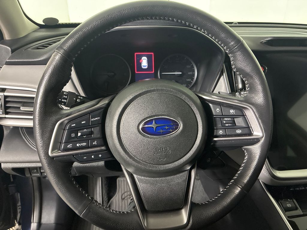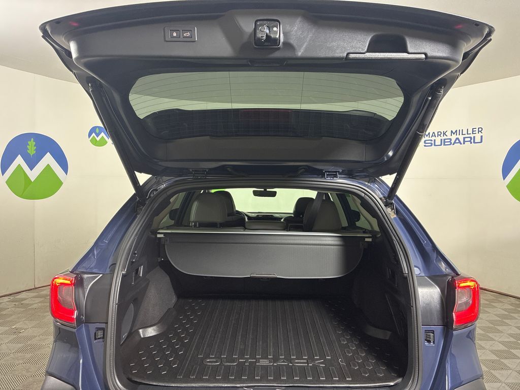 This 2023 Cosmic Blue Pearl Subaru Outback Limited AWD is well equipped and includes these features and benefits: 12 Speakers, 3.90 Axle Ratio, 4-Wheel Disc Brakes, ABS brakes, Air Conditioning, Alloy wheels, AM/FM radio: SiriusXM, Auto High-beam Headlights, Auto-dimming Rear-View mirror, Automatic temperature control, Brake assist, Bumpers: body-color, Compass, Driver door bin, Driver vanity mirror, Dual front impact airbags, Dual front side impact airbags, Electronic Stability Control, Emergency communication system: STARLINK Safety Plus (3-year free trial), Exterior Parking Camera Rear, Four wheel independent suspension, Front anti-roll bar, Front Bucket Seats, Front Center Armrest w/Storage, Front dual zone A/C, Front fog lights, Front reading lights, Fully automatic headlights, Garage door transmitter: HomeLink, harman/kardon® Speakers, Heated door mirrors, Heated Front Bucket Seats, Heated front seats, Heated rear seats, Illuminated entry, Knee airbag, Leather Shift Knob, Leather steering wheel, Low tire pressure warning, Memory seat, Occupant sensing airbag, Outside temperature display, Overhead airbag, Overhead console, Panic alarm, Passenger door bin, Passenger vanity mirror, Perforated Leather-Trimmed Upholstery, Power door mirrors, Power driver seat, Power Liftgate, Power passenger seat, Power steering, Power windows, Radio: Subaru STARLINK 11.6'' Multimedia Plus Sys, Rear anti-roll bar, Rear seat center armrest, Rear window defroster, Rear window wiper, Remote keyless entry, Roof rack, Security system, Speed control, Speed-sensing steering, Split folding rear seat, Spoiler, Steering wheel mounted audio controls, Steering Wheel Paddle Shift Control Switches, Tachometer, Telescoping steering wheel, Tilt steering wheel, Traction control, Trip computer, Turn signal indicator mirrors, Variably intermittent wipers, and Wheels: 18'' x 7J Black Aluminum Alloy.