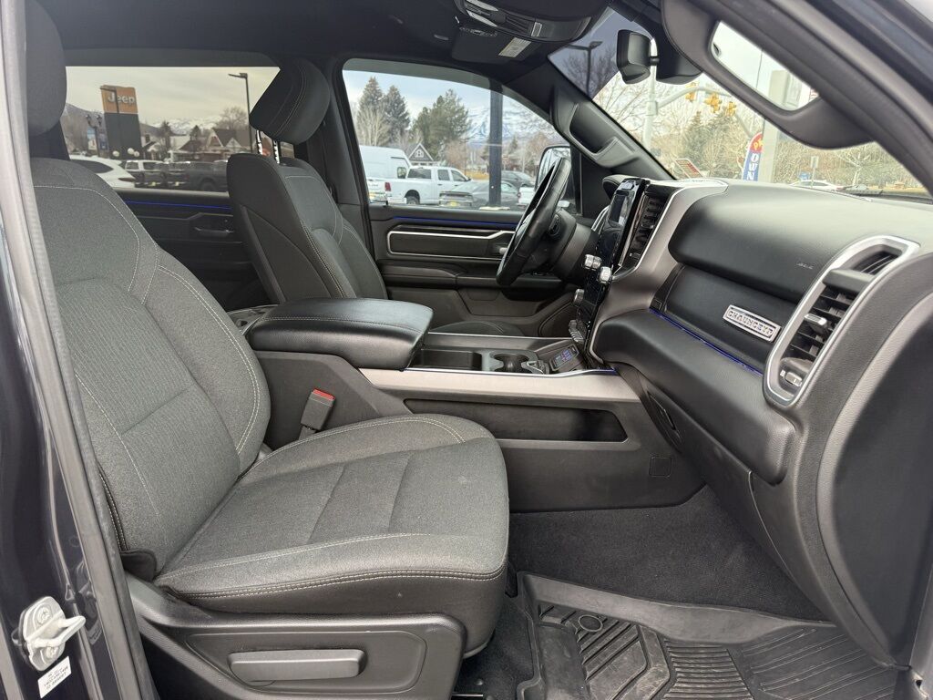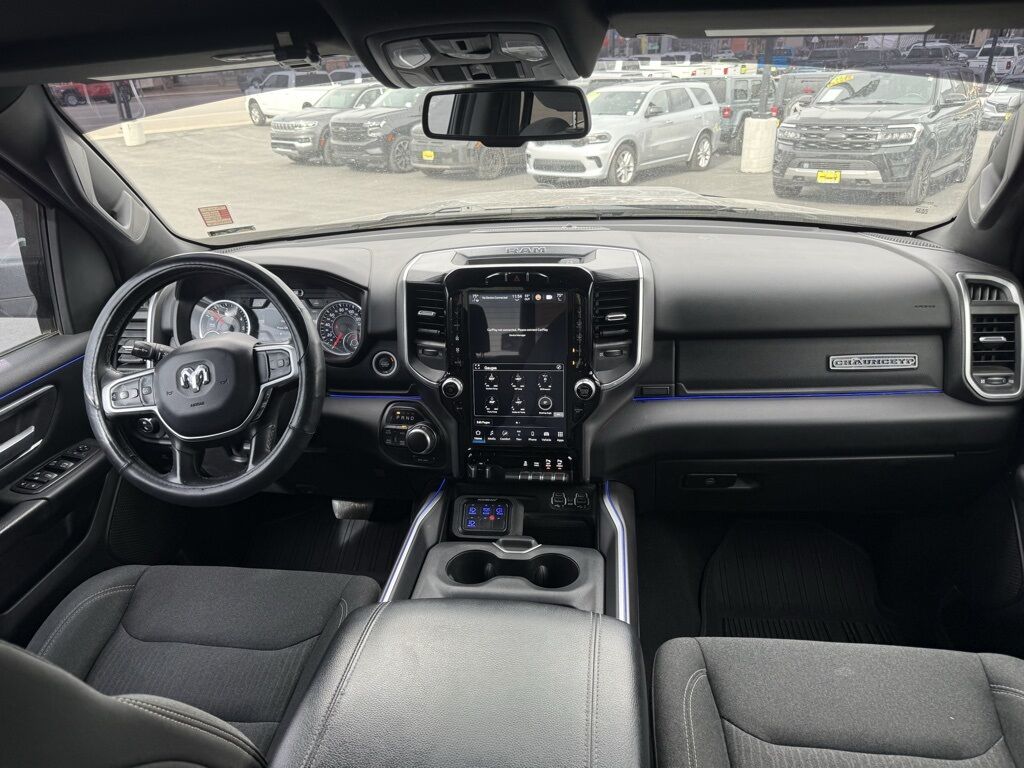3 Rear Seat Head Restraints, 33 Gallon Fuel Tank, 4 Way Front Headrests, 4-Wheel Disc Brakes, 48V Belt Starter Generator, 6 Speakers, 9 Amplified Speakers w/Subwoofer, ABS brakes, Air Conditioning, Alloy wheels, AM/FM radio, Big Horn Non-BSG Level 2 Group w/Media Hub (DISC), Blind Spot & Cross Path Detection, Brake assist, Bumpers: chrome, Cloth Bench Seat, Compass, Delay-off headlights, Deluxe Cloth Bucket Seats, Driver door bin, Dual front impact airbags, Dual front side impact airbags, E-Locker Rear Axle, Electronic Stability Control, Front anti-roll bar, Front Center Armrest w/Storage, Front fog lights, Front LED Fog Lamps, Front reading lights, Front Seat Back Map Pockets, Front wheel independent suspension, Fully automatic headlights, GPS Antenna Input, Heated door mirrors, Illuminated entry, Leather steering wheel, LED Reflector Headlamps, LED Taillamps, Low tire pressure warning, Occupant sensing airbag, Outside temperature display, Overhead airbag, Overhead console, Panic alarm, ParkSense Front/Rear Park Assist w/Stop, ParkView Rear Back-Up Camera, Passenger door bin, Passenger vanity mirror, Power door mirrors, Power steering, Power windows, Premium Lighting Group, Quick Order Package 25Z Big Horn/Lone Star, Radio data system, Radio: Uconnect 3 w/5'' Display, Radio: Uconnect 4 w/8.4'' Display, Rear 60/40 Folding Seat, Rear anti-roll bar, Rear seat center armrest, Rear step bumper, Rear Wheelhouse Liners, Remote keyless entry, Remote Start System, Single Disc Remote CD Player, Speed control, Split folding rear seat, Sport Appearance Package, Tachometer, Telescoping steering wheel, Tilt steering wheel, Traction control, Trailer Brake Control, Trip computer, Variably intermittent wipers, Voltmeter, Wheels: 18'' x 8'', Wheels: 20'' x 9'' Aluminum Chrome Clad.