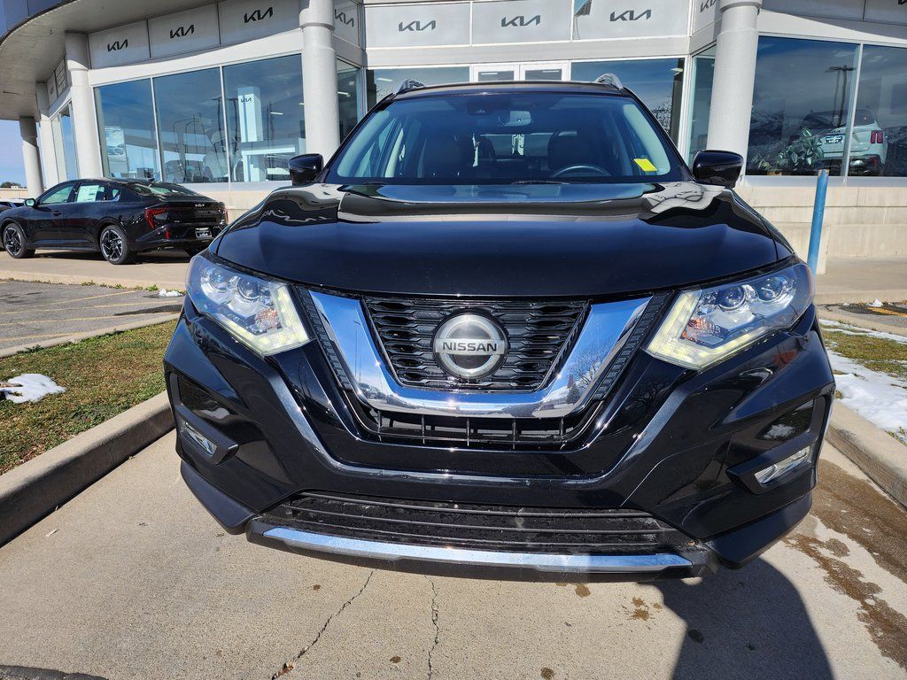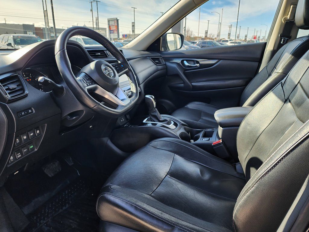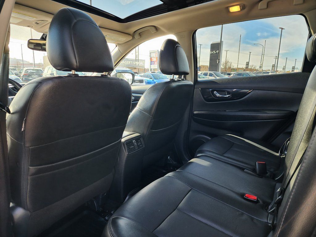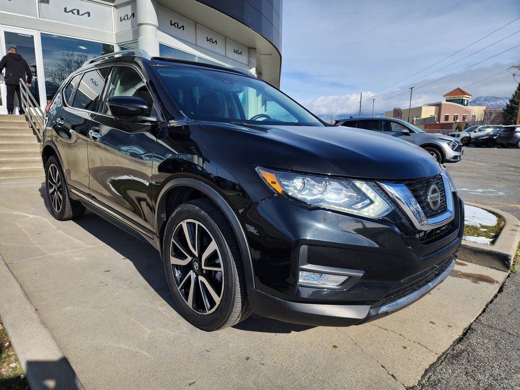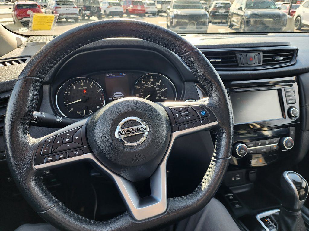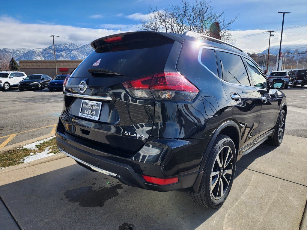Clean CARFAX. Black 2020 Nissan Rogue SL AWD CVT with Xtronic 2.5L I4 DOHC 16V AWD, 19'' Aluminum Alloy Wheels, 4-Wheel Disc Brakes, 6.386 Axle Ratio, 9 Speakers, ABS brakes, Air Conditioning, Alloy wheels, AM/FM radio: SiriusXM, Anti-whiplash front head restraints, Auto High-beam Headlights, Auto-dimming Rear-View mirror, Automatic temperature control, Blind Spot Warning, Bose Audio, Brake assist, Bumpers: body-color, CD player, Delay-off headlights, Driver door bin, Driver vanity mirror, Dual front impact airbags, Dual front side impact airbags, Electronic Stability Control, Emergency communication system: NissanConnect Services, Exterior Parking Camera Rear, Four wheel independent suspension, Front anti-roll bar, Front Bucket Seats, Front Center Armrest w/Storage, Front dual zone A/C, Front fog lights, Front reading lights, Fully automatic headlights, Garage door transmitter: HomeLink, Heated door mirrors, Heated Front Bucket Seats, Heated front seats, Heated steering wheel, Illuminated entry, Lane Departure Warning System, Leather Shift Knob, Leather-Appointed Seat Trim, Low tire pressure warning, Memory seat, Navigation System, NissanConnect featuring Apple CarPlay and Android Auto, Occupant sensing airbag, Outside temperature display, Overhead airbag, Overhead console, Panic alarm, Passenger door bin, Passenger vanity mirror, Power door mirrors, Power driver seat, Power Liftgate, Power passenger seat, Power steering, Power windows, Radio data system, Radio: AM/FM/CD/AUX NissanConnect w/Navigation, Rear anti-roll bar, Rear Parking Sensors, Rear seat center armrest, Rear window defroster, Rear window wiper, Remote keyless entry, Roof rack: rails only, Security system, Speed control, Speed-sensing steering, Split folding rear seat, Spoiler, Steering wheel mounted audio controls, Tachometer, Telescoping steering wheel, Tilt steering wheel, Traction control, Trip computer, Turn signal indicator mirrors, Variably intermittent wipers, AWD.