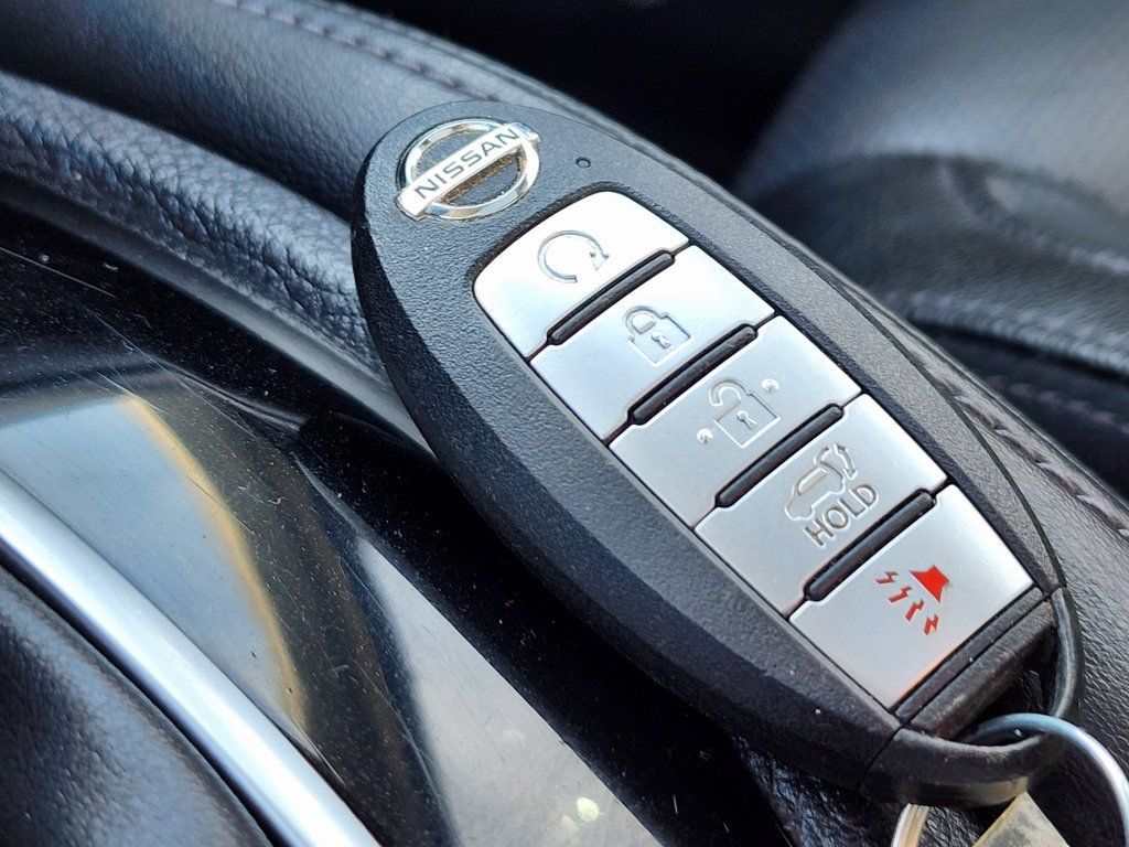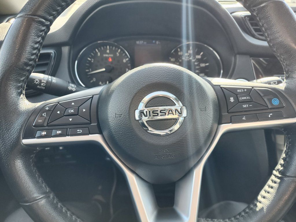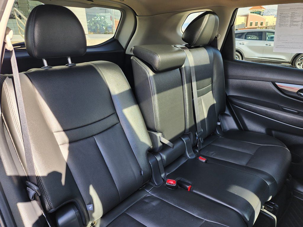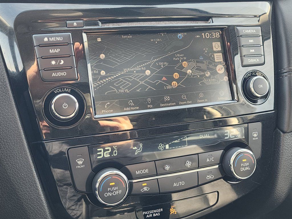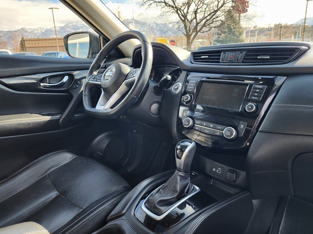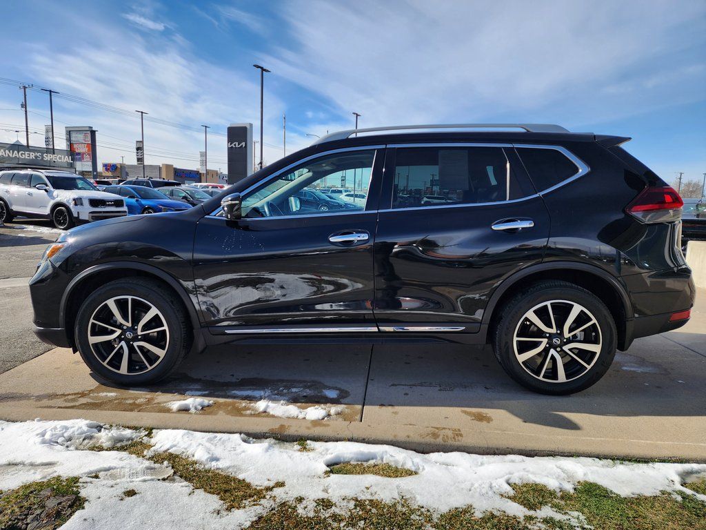 Clean CARFAX. Black 2020 Nissan Rogue SL AWD CVT with Xtronic 2.5L I4 DOHC 16V AWD, 19'' Aluminum Alloy Wheels, 4-Wheel Disc Brakes, 6.386 Axle Ratio, 9 Speakers, ABS brakes, Air Conditioning, Alloy wheels, AM/FM radio: SiriusXM, Anti-whiplash front head restraints, Auto High-beam Headlights, Auto-dimming Rear-View mirror, Automatic temperature control, Blind Spot Warning, Bose Audio, Brake assist, Bumpers: body-color, CD player, Delay-off headlights, Driver door bin, Driver vanity mirror, Dual front impact airbags, Dual front side impact airbags, Electronic Stability Control, Emergency communication system: NissanConnect Services, Exterior Parking Camera Rear, Four wheel independent suspension, Front anti-roll bar, Front Bucket Seats, Front Center Armrest w/Storage, Front dual zone A/C, Front fog lights, Front reading lights, Fully automatic headlights, Garage door transmitter: HomeLink, Heated door mirrors, Heated Front Bucket Seats, Heated front seats, Heated steering wheel, Illuminated entry, Lane Departure Warning System, Leather Shift Knob, Leather-Appointed Seat Trim, Low tire pressure warning, Memory seat, Navigation System, NissanConnect featuring Apple CarPlay and Android Auto, Occupant sensing airbag, Outside temperature display, Overhead airbag, Overhead console, Panic alarm, Passenger door bin, Passenger vanity mirror, Power door mirrors, Power driver seat, Power Liftgate, Power passenger seat, Power steering, Power windows, Radio data system, Radio: AM/FM/CD/AUX NissanConnect w/Navigation, Rear anti-roll bar, Rear Parking Sensors, Rear seat center armrest, Rear window defroster, Rear window wiper, Remote keyless entry, Roof rack: rails only, Security system, Speed control, Speed-sensing steering, Split folding rear seat, Spoiler, Steering wheel mounted audio controls, Tachometer, Telescoping steering wheel, Tilt steering wheel, Traction control, Trip computer, Turn signal indicator mirrors, Variably intermittent wipers, AWD.