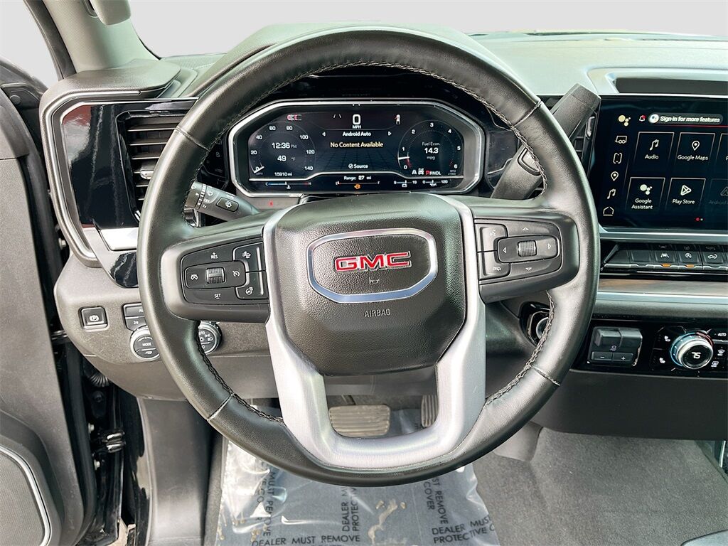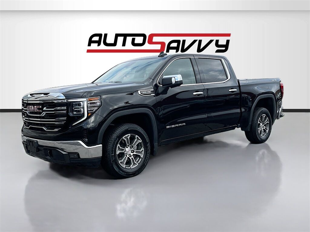 Discover the 2025 GMC Sierra 1500 4WD Crew Cab Short Box SLT, now available at AutoSavvy Lindon. This Onyx Black beauty is a blend of power, luxury, and technology, perfect for those who demand the best. With only 15,843 miles, this truck is barely broken in, promising years of reliable performance. Under the hood, the EcoTec3 5.3L V-8 engine with 355 horsepower and cylinder deactivation ensures a robust yet efficient drive, achieving up to 19 MPG on the highway. The interior boasts premium leather front seat upholstery, a heated steering wheel, and advanced tech like Apple CarPlay, Android Auto, and a 13.4-inch touchscreen for seamless connectivity. Safety features such as Automatic Emergency Braking, Lane Departure Warning, and a high-definition rear vision camera provide peace of mind on every journey. This 2025 GMC Sierra 1500 comes with a branded title, highlighting AutoSavvy's dedication to offering high-quality vehicles at exceptional value. As a Savvy Certified vehicle, it includes a 4-month/4,500-mile limited warranty, ensuring confidence and assurance in your purchase. Each vehicle at AutoSavvy Lindon undergoes a rigorous inspection to meet stringent safety and performance standards, ensuring reliability and satisfaction. Join the community of savvy buyers who appreciate the unique benefits of purchasing from AutoSavvy. Visit AutoSavvy Lindon today to explore this exceptional Sierra and experience the perfect blend of innovation, power, and luxury.