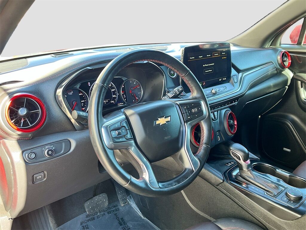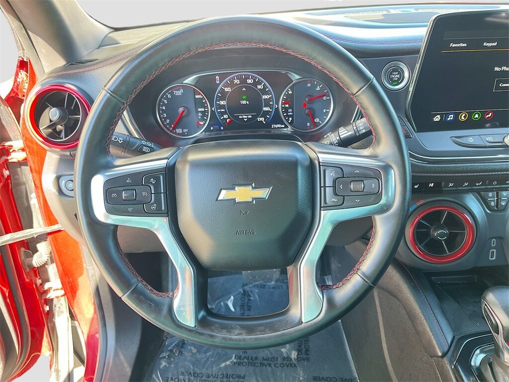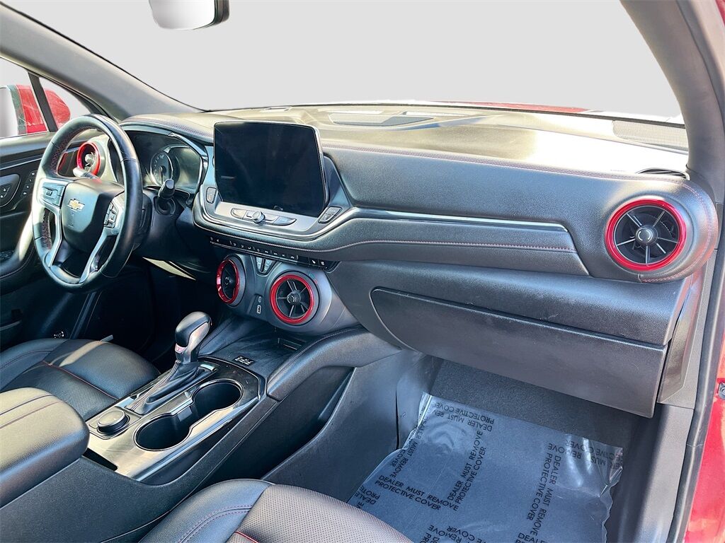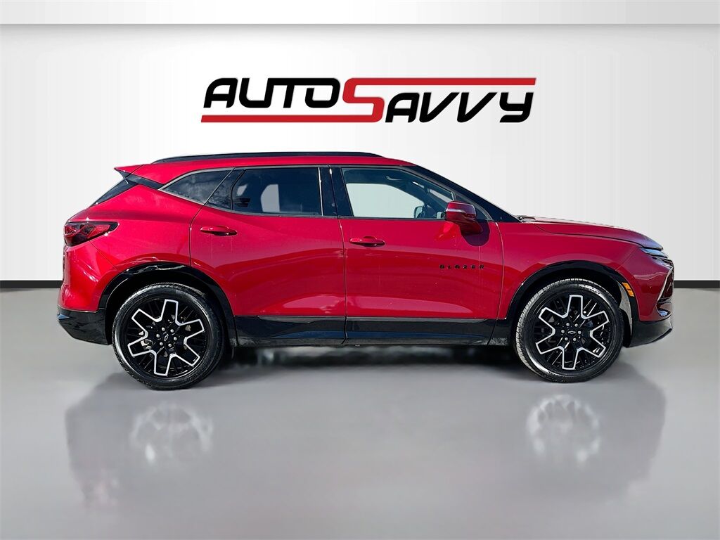 Discover the 2023 Chevrolet Blazer AWD RS, now available at AutoSavvy Lindon. This vibrant Radiant Red Tintcoat SUV combines style, performance, and technology, making it a standout choice for any driver. Under the hood, the powerful 3.6L V-6 engine delivers an impressive 308 horsepower, paired with a 9-speed automatic transmission for a smooth and responsive drive. With only 27,596 miles, this Blazer offers low mileage for its class, ensuring plenty of adventures ahead. Enjoy premium features such as leather front seat upholstery with Jet Black and Red Accents, a panoramic sunroof, and a Bose premium audio system. Stay connected and entertained with the Chevrolet Infotainment 3 Premium System, featuring Apple CarPlay and Android Auto. Safety is paramount with standard features like Adaptive Cruise Control, Blind Spot Monitor, and HD Surround Vision. This 2023 Chevrolet Blazer comes with a branded title, reflecting AutoSavvy's commitment to providing high-quality vehicles at exceptional value. As a Savvy Certified vehicle, it includes a 4-month/4,500-mile limited warranty, offering confidence and assurance in your purchase. Every vehicle at AutoSavvy Lindon undergoes a comprehensive inspection to meet rigorous safety and performance standards, ensuring reliability and satisfaction. Join the community of savvy buyers who appreciate the unique benefits of purchasing from AutoSavvy. Visit AutoSavvy Lindon today to explore this exceptional Blazer and experience the perfect fusion of power, technology, and style.