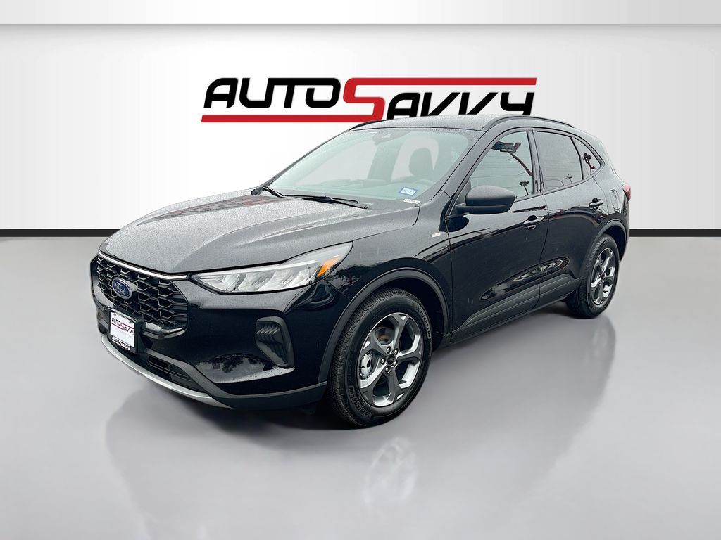Discover the sleek and sporty 2025 Ford Escape ST-Line, now available at AutoSavvy Las Vegas. With a striking Agate Black Metallic exterior and an Ebony interior accented with red stitching, this sport utility vehicle is designed to turn heads. Under the hood, the Escape features a robust EcoBoost 1.5L I-3 engine, delivering 180 horsepower with an intercooled turbo for efficient performance. Enjoy a smooth ride with its 8-speed automatic transmission and impressive fuel efficiency of 34 MPG on the highway. With only 7,900 miles, this vehicle offers a nearly new driving experience. Inside, you'll find premium features such as dual climate control, a power driver seat, and the SYNC 4 infotainment system with an 8-inch touchscreen, ensuring every journey is comfortable and connected. Safety is paramount with advanced features like blind spot monitoring, lane departure warning, and automatic emergency braking. The current status of the title is unknown, reflecting AutoSavvy's commitment to transparency and quality. This Escape ST-Line is a standout choice for those seeking a dynamic blend of style, technology, and safety. Premium options include a rear spoiler, keyless start, and a WiFi hotspot, enhancing your driving experience. Visit AutoSavvy Las Vegas today to explore the exceptional value and quality of the 2025 Ford Escape ST-Line. Discover the AutoSavvy difference and drive away with confidence.