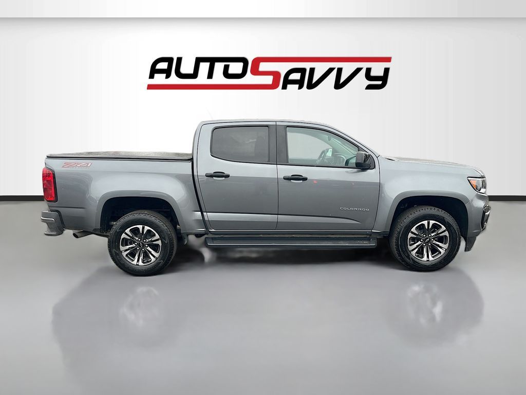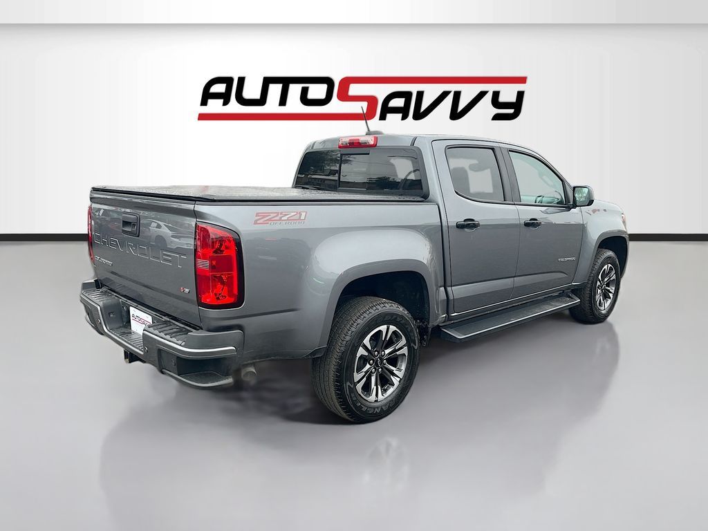 Explore the rugged capability and modern amenities of the 2021 Chevrolet Colorado 4WD Crew Cab Short Box Z71, available now at AutoSavvy Las Vegas. With only 39,735 miles, this Satin Steel Metallic beauty is ready for adventure. Under the hood, you'll find a robust 3.6L V-6 engine delivering 308 horsepower, paired with an 8-speed automatic transmission for smooth and powerful performance. This Colorado is equipped with a suite of standard features including Apple CarPlay and Android Auto, heated front seats, a heated steering wheel, and a premium Chevrolet Infotainment 3 Plus system with an 8-inch touchscreen. The interior boasts a stylish Jet Black cloth and leatherette upholstery, ensuring comfort on every journey. With four-wheel drive, off-road suspension, and a trailer hitch, this truck is prepared for any terrain or towing needs. The current status of the title is branded, underscoring AutoSavvy's dedication to transparency and quality. This vehicle is Savvy Certified, backed by our 4-month/4,500 Mile Warranty, providing peace of mind with your purchase. Safety is a priority with features like electronic stability control, hill descent control, and a rearview camera. Whether you're navigating city streets or heading off-road, the 2021 Chevrolet Colorado Z71 offers the perfect combination of capability and convenience. Visit AutoSavvy Las Vegas today to experience the exceptional value and quality of this versatile truck. Discover the AutoSavvy difference and drive away with confidence.