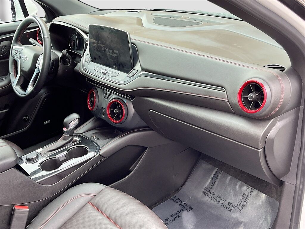 Discover the dynamic 2023 Chevrolet Blazer AWD RS, now available at AutoSavvy Draper. This Iridescent Pearl Tricoat SUV combines striking aesthetics with powerful performance, driven by a formidable 3.6L V-6 engine that delivers 308 horsepower and features cylinder deactivation for enhanced efficiency. With just 32,341 miles, this Blazer offers a nearly new driving experience. The RS trim is loaded with premium features, including a panoramic power sunroof, perforated leather-appointed seats, and the advanced Chevrolet Infotainment 3 Premium system with a 10.2-inch touchscreen. Enjoy seamless connectivity with Apple CarPlay/Android Auto, a Bose premium sound system, and dual-zone climate control, ensuring every journey is as comfortable as it is exhilarating. This 2023 Chevrolet Blazer comes with a branded title, reflecting AutoSavvy Draper's commitment to offering high-quality vehicles at exceptional value. Despite its branded status, this SUV has undergone a comprehensive inspection to meet top performance and reliability standards. As a Savvy Certified vehicle, it includes a 4-month/4,500-mile warranty, providing you with additional peace of mind. Visit AutoSavvy Draper today to explore the perfect blend of power, technology, and reliability in the Chevrolet Blazer AWD RS. Join our community of savvy buyers who trust AutoSavvy for their automotive needs and enjoy an unparalleled buying experience where quality meets value.