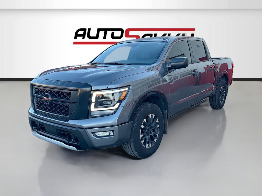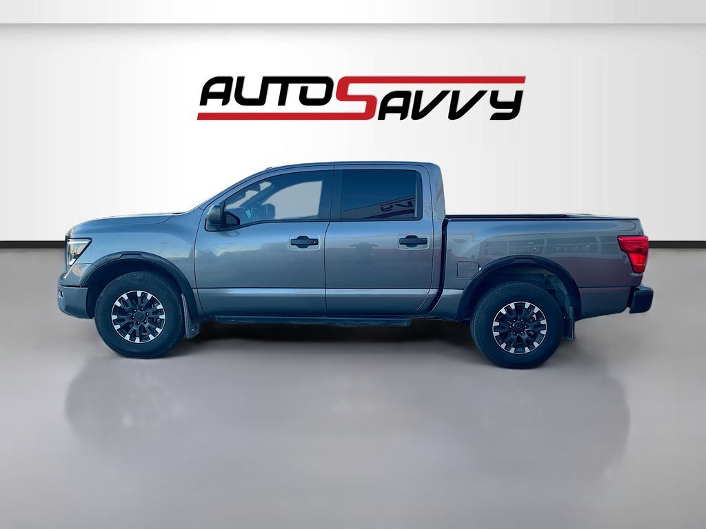 Discover the 2021 Nissan TITAN Crew Cab PRO-4X 4x4 at AutoSavvy Windsor, a powerful and capable truck designed for both adventure and everyday use. With a robust Endurance 5.6L V-8 engine delivering an impressive 400HP, this TITAN ensures a commanding presence on the road. The Gun Metallic exterior paired with a Black interior offers a sleek and modern look, while the low mileage of just 40,273 miles promises longevity and reliability. Standard features include a 9-speed automatic transmission, part-time 4WD, and advanced safety systems like Blind Spot Warning and Automatic Emergency Braking. Enjoy premium technology with Apple CarPlay, Android Auto, and a NissanConnect Navigation system, all accessible via a 9-inch touchscreen display. Optional features such as the Off Road Protection Package and PRO-4X Rugged Step Boards further enhance its rugged capabilities. The current status of the title is branded, underscoring AutoSavvy Windsor's commitment to transparency and quality. This Nissan TITAN is Savvy Certified, providing peace of mind with a 4-month/4,500-mile warranty. Each vehicle undergoes a meticulous inspection to meet high safety and performance standards, ensuring it is in excellent condition. Visit AutoSavvy Windsor today to explore this exceptional truck and discover why the 2021 Nissan TITAN Crew Cab PRO-4X 4x4 is the ideal choice for those seeking a blend of power, advanced technology, and rugged durability. Whether you're tackling tough terrains or cruising through city streets, this TITAN promises a dynamic and confident driving experience.