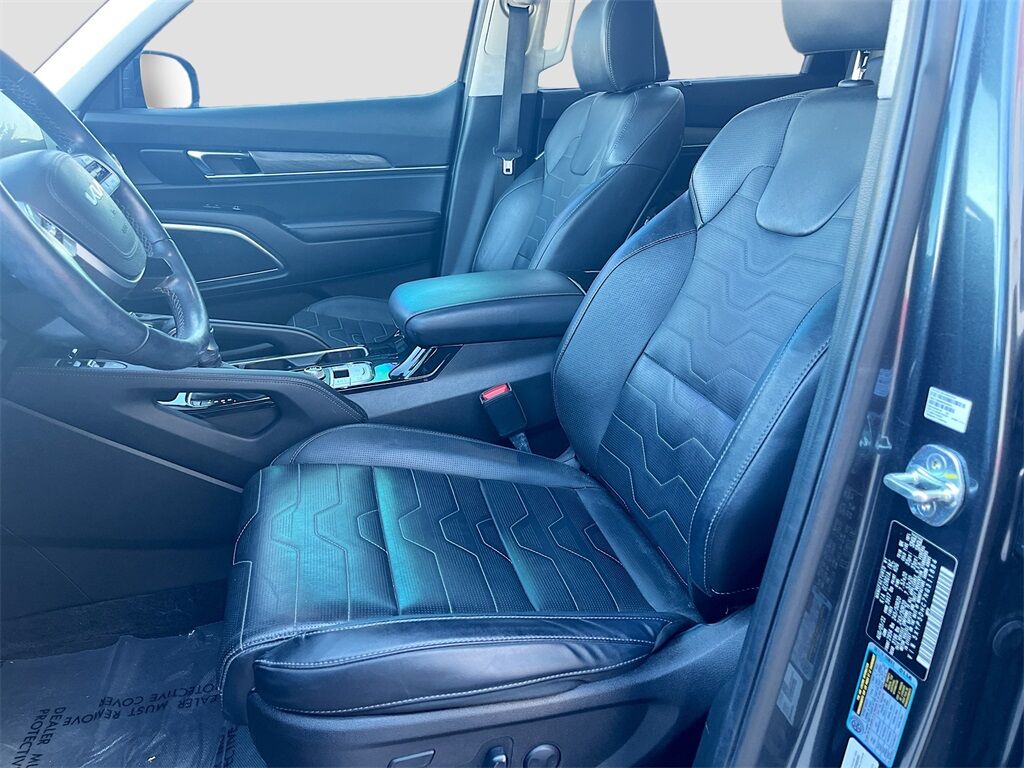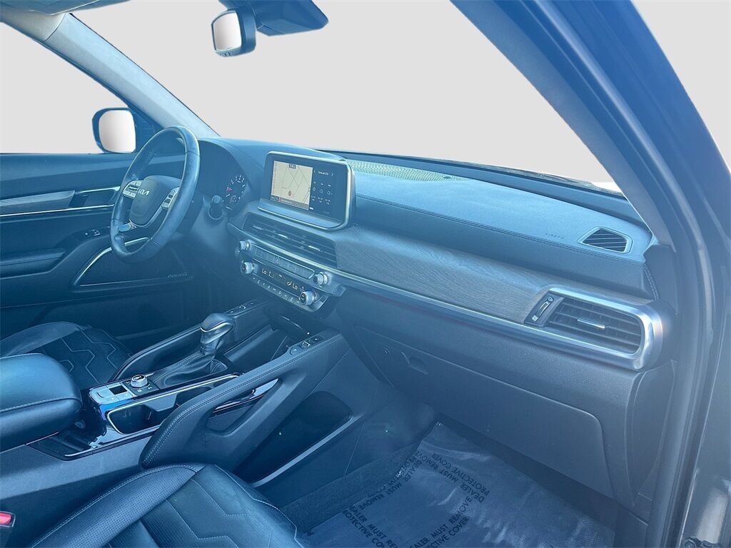 Discover the 2022 Kia Telluride SX AWD at AutoSavvy Windsor, a sophisticated blend of luxury, performance, and cutting-edge technology. With just 35,861 miles, this Gravity Grey beauty is powered by a robust LAMBDA II 3.8L V-6 engine delivering 291HP, coupled with an 8-speed automatic transmission for a smooth and responsive drive. The Telluride stands out with its premium Nappa leather interior, heated and ventilated front and second-row seats, and a dual sunroof offering a panoramic view. Stay connected with a 10.2-inch touchscreen featuring Apple CarPlay, Android Auto, and an integrated navigation system. Safety is paramount with features like Blind Spot Monitor, Adaptive Cruise Control, and Automatic Emergency Braking, ensuring peace of mind on every journey. The current status of the title is branded, reflecting AutoSavvy Windsor's commitment to transparency and quality. This Kia Telluride is Savvy Certified, offering peace of mind with a 4-month/4,500-mile warranty. Each vehicle undergoes a rigorous inspection to meet high safety and performance standards, ensuring it is in excellent condition. Visit AutoSavvy Windsor today to explore this exceptional SUV and discover why the 2022 Kia Telluride SX AWD is the ideal choice for those seeking a blend of power, luxury, and advanced technology. Whether you're navigating city streets or exploring off the beaten path, this Telluride promises a dynamic and comfortable driving experience.